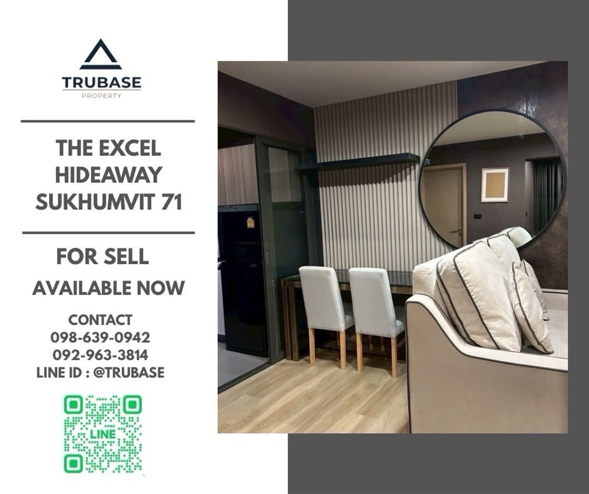 Property code: TBEVD4 Project: The excel hideaway sukhumvit 71 Low-Rise condominium, modern design On a potential location, Sukhumvit 71 (Pridi Banomyong), outstanding with a quiet atmosphere, high privacy, and close to BTS Phra Khanong. Type: 1 bedroom | 1 bathroom Size: 36.3 sq m. Floor : 6/B 🔥Special price only: 3,290,000 baht🔥 Ask for more information | Make an appointment to see the room ❇️Contact us ❇️ 📱 Contact number / Contact number 💬 Line Official ID : @trubase 🔗 Line Official Link : https://line.me/R/home/profile?id=@trubase