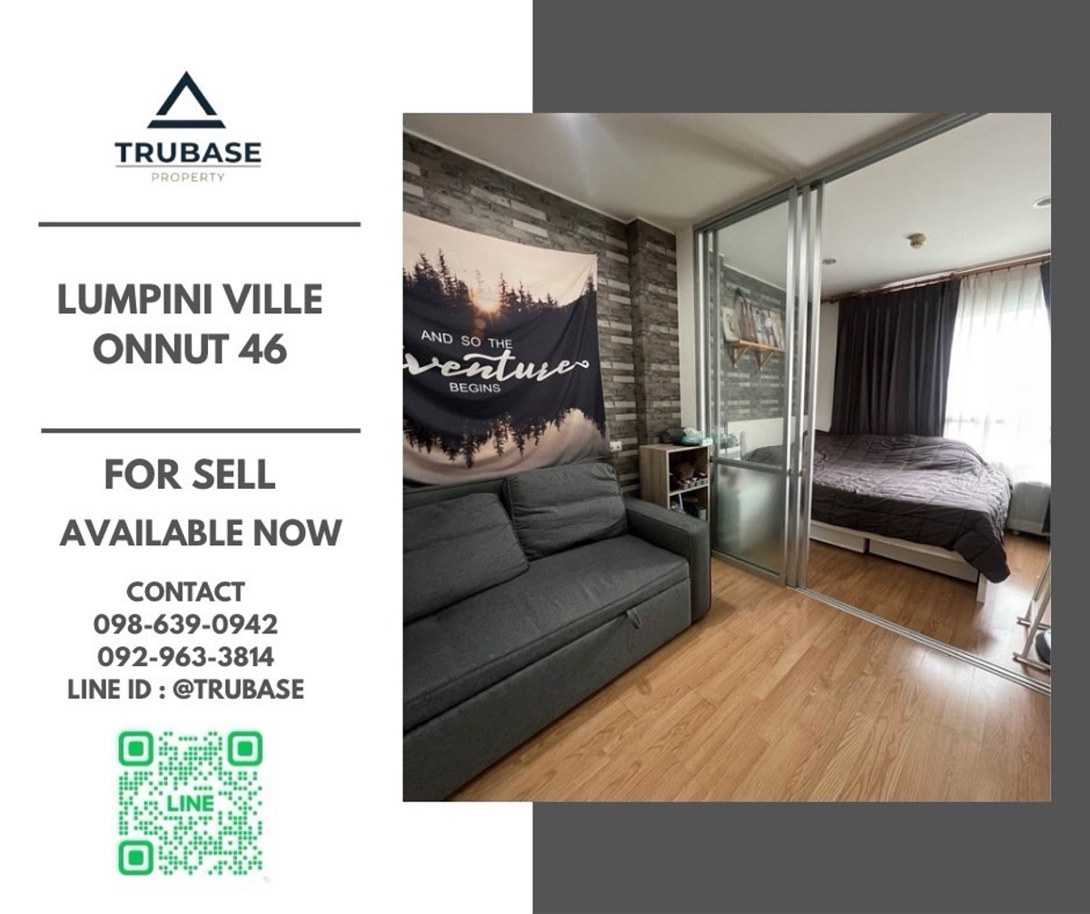 Property code: TBEVDK7 Project: Lumpini ville onnut 46 The project is located in an alley that can easily pass out onto Srinakarin Road, close to the Si Rat Expressway entrance and exit, near Seacon Square and Paradise Park. It is a worthwhile project with a price for both living in it yourself and investing for rent Type: 1 bedroom | 1 bathroom Size: 23 sq m Floor: 8/C 🔥Special price only: 1,199,000 baht🔥 Ask for more information | Make an appointment to view the room ❇️Contact us ❇️ 📱 Contact number / Contact number 💬 Line Official ID : @trubase 🔗 Line Official Link : https://line.me/R/home/profile?id=@trubase