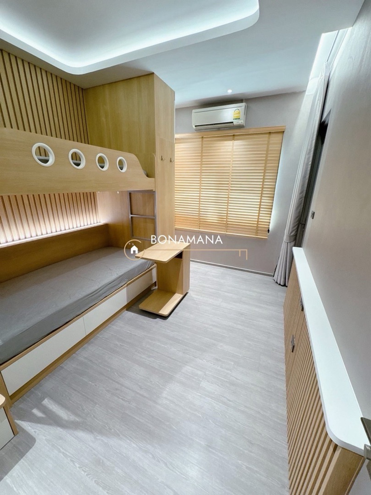 For rent: The Landmark Ekkamai-Ramindra Luxury Townhome 3 floors 3 bedrooms, 4 bathrooms electrical wires Various cables go into the ground throughout the project fully furnished. Ready to move in House area: 29.9 sq m. Usable area: 224 sq m. Inside the house: Walk-in Closet, Luxury Master Bedroom, Smart Air Circulation System, Built-in Kitchen, Sky hall Penthouse Air conditioner 6 Daikin(inverters), anti-theft alarm system throughout the house, electric gate Special extension: The parking area supports the installation of an EV Charger with CCTV cameras. Roof in front of the house Back roof (SCG : Shinkolite) Foundation both front and back of the house. Install micro file piles Security system within the house: Install a burglar alarm system throughout the house. Smoke detection system Facilities within the project: 24/7 security system, garden view fitness center, large swimming pool and peaceful corner jacuzzi. Close to nature, relax amid large grass hills and the shady trees in the central garden area Sell 11.5 MB Rent 75,000 per month 2 month warranty If interested, contact Khun Tang: Contact number Line ID: @bonamana Whatsapp: Contact number