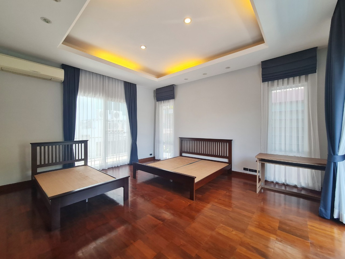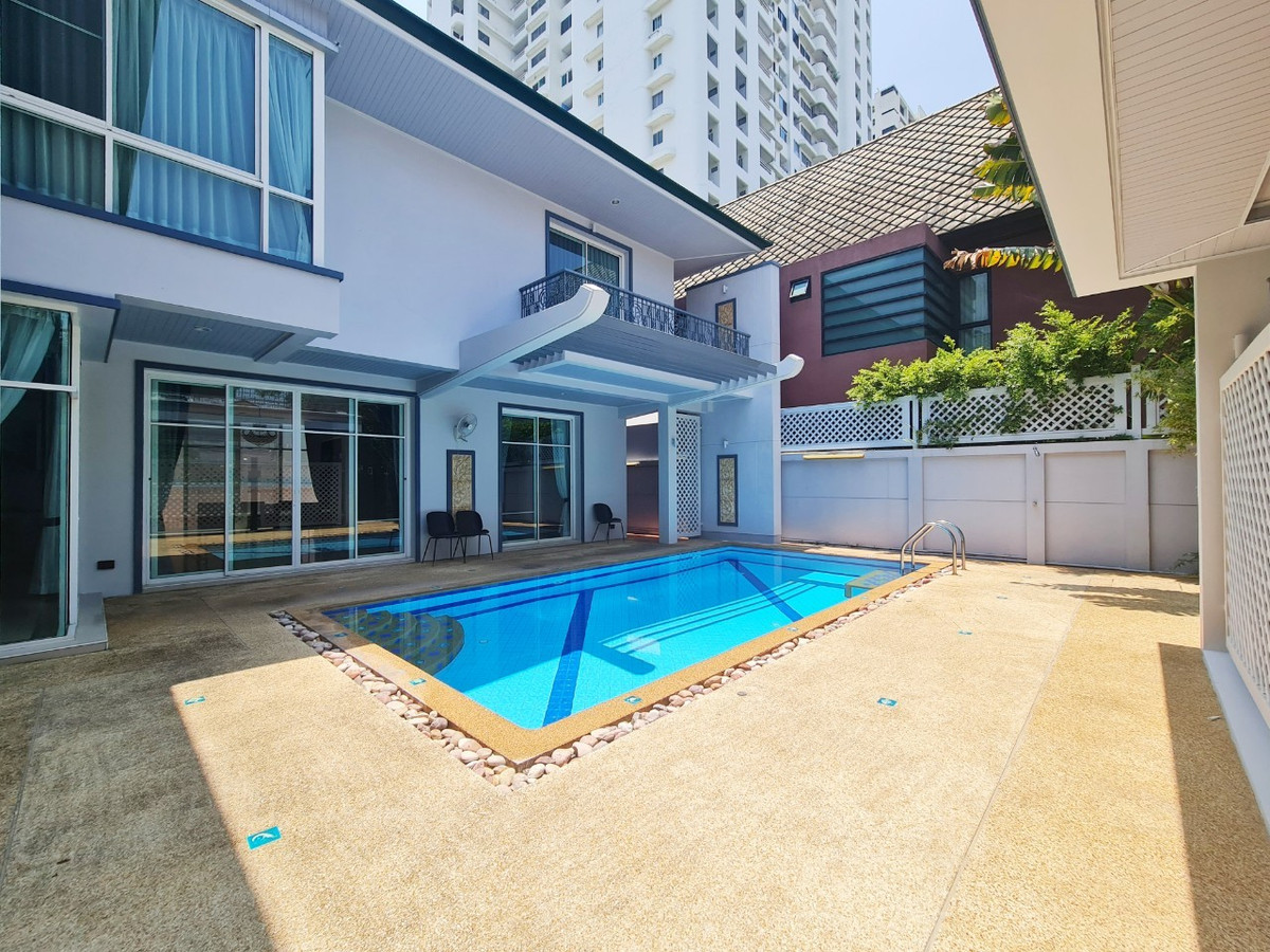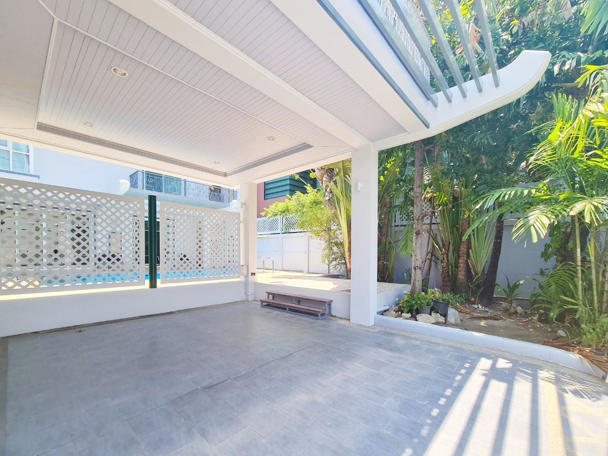 🏡 Spacious 4BR Pool Villa Near BTS Phrom Phong – Bright, Private & Resort-Style Living This large pool villa in the heart of Sukhumvit features a stunning double-volume ceiling, full-height windows, and abundant natural light throughout the day. The open living area flows seamlessly to the private pool, creating a relaxing resort-style atmosphere right at home. ✨ Property Highlights • Grand double-height living room with full curtains • Private pool 4×8 m • 450 sq.m usable area with a practical layout • Bright, airy living & dining space • 4 Bedrooms / 5 Bathrooms / Office room / Maid’s quarter • 2 Parking spaces • Quiet and private surroundings 🚆 Prime area, surrounded with peaceful neighborhood, only 1 km or Just 10 minutes walk to BTS Phrom Phong Suitable for families or home office use. Company registration allowed. Rental price: 180,000 THB/month (minimum 2-year lease) Services included: gardening, air-conditioning maintenance, pool cleaning, regular maintenance. ------------------- Viewing appointment please call: Contact number Line Official: @211ghmqu LineID: def.99888 WeChat: Chloe_99888
