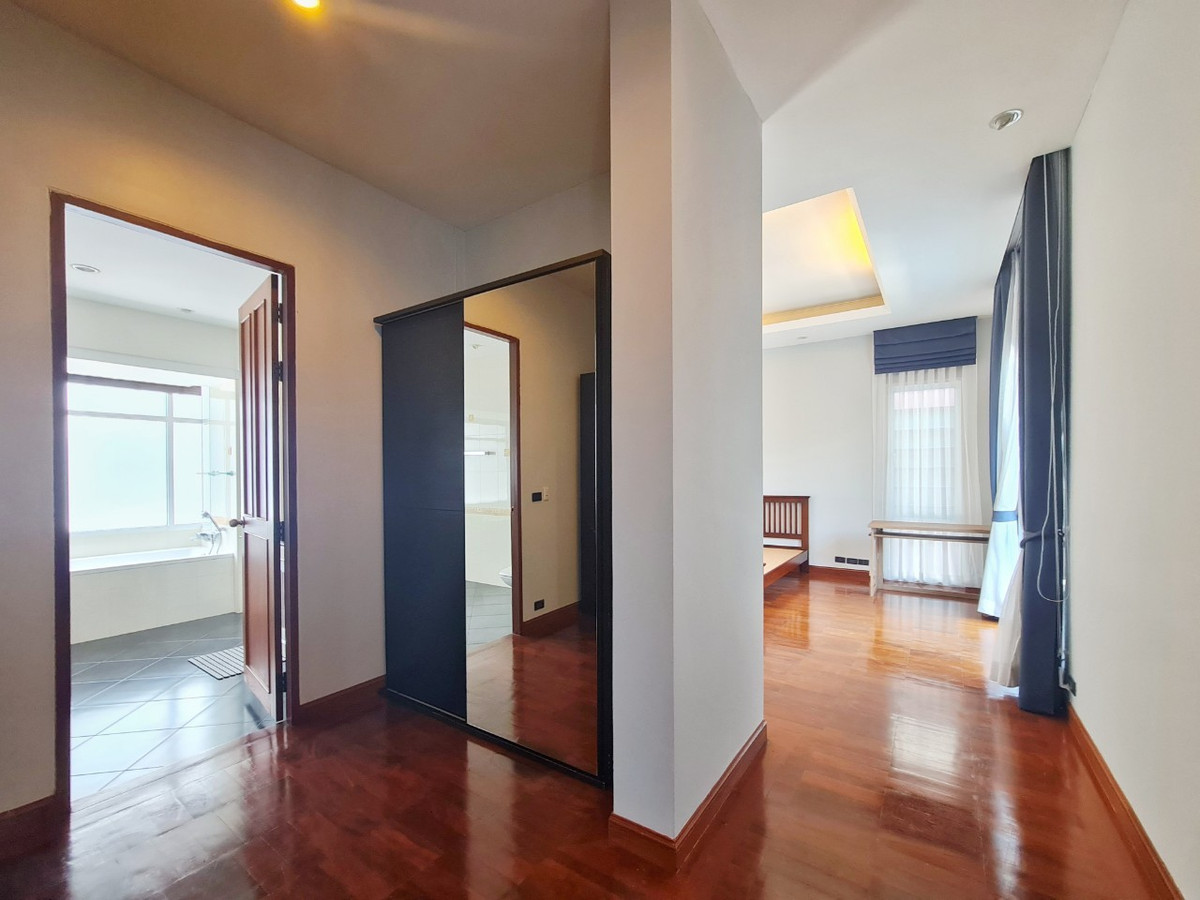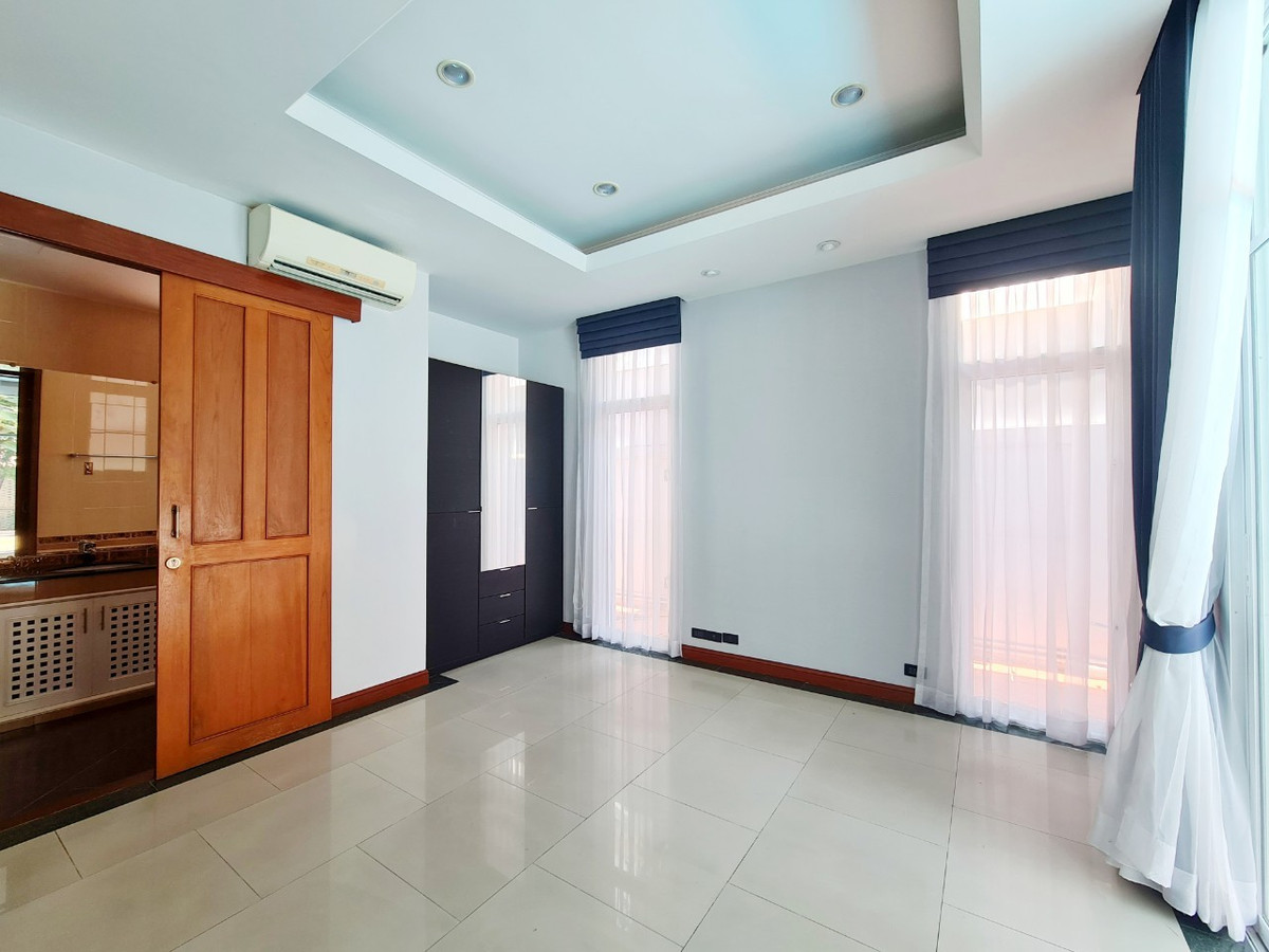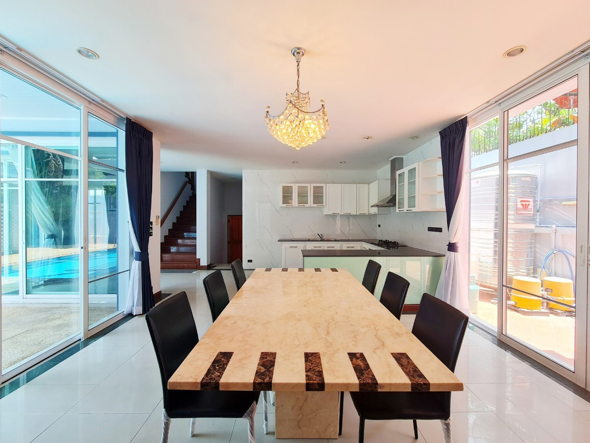 🏡 Spacious 4BR Pool Villa Near BTS Phrom Phong – Bright, Private & Resort-Style Living This large pool villa in the heart of Sukhumvit features a stunning double-volume ceiling, full-height windows, and abundant natural light throughout the day. The open living area flows seamlessly to the private pool, creating a relaxing resort-style atmosphere right at home. ✨ Property Highlights • Grand double-height living room with full curtains • Private pool 4×8 m • 450 sq.m usable area with a practical layout • Bright, airy living & dining space • 4 Bedrooms / 5 Bathrooms / Office room / Maid’s quarter • 2 Parking spaces • Quiet and private surroundings 🚆 Prime area, surrounded with peaceful neighborhood, only 1 km or Just 10 minutes walk to BTS Phrom Phong Suitable for families or home office use. Company registration allowed. Rental price: 180,000 THB/month (minimum 2-year lease) Services included: gardening, air-conditioning maintenance, pool cleaning, regular maintenance. ------------------- Viewing appointment please call: Contact number Line Official: @211ghmqu LineID: def.99888 WeChat: Chloe_99888