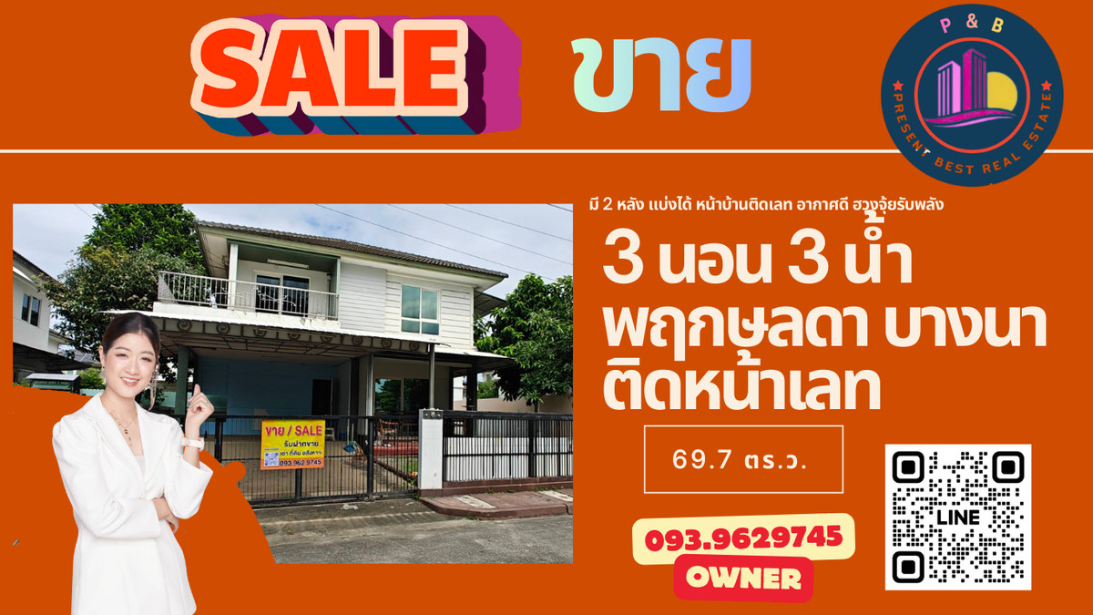 🔥 Urgently selling below cost 🔥 Pruksa Lada Bangna, next to the market, best location in the village, good feng shui 69.7 9 sq m.