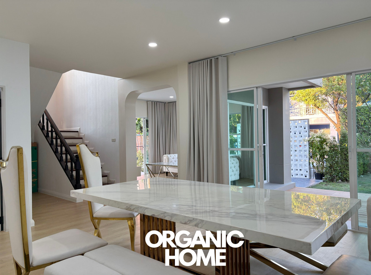 Krisada Lagoon Village, Rama 5, corner detached house, newly renovated, decorated, ready to move in, large area up to 100 sq m., with large garden and courtyard. * 3 bedrooms, 3 bathrooms, 1 maid's room (separate bathroom) * 2 Parking * Close to the expressway, no more than 5 minutes. * Close to the Purple Line, Central Westgate, just 10 minutes. * Near Denla School, Rama 5