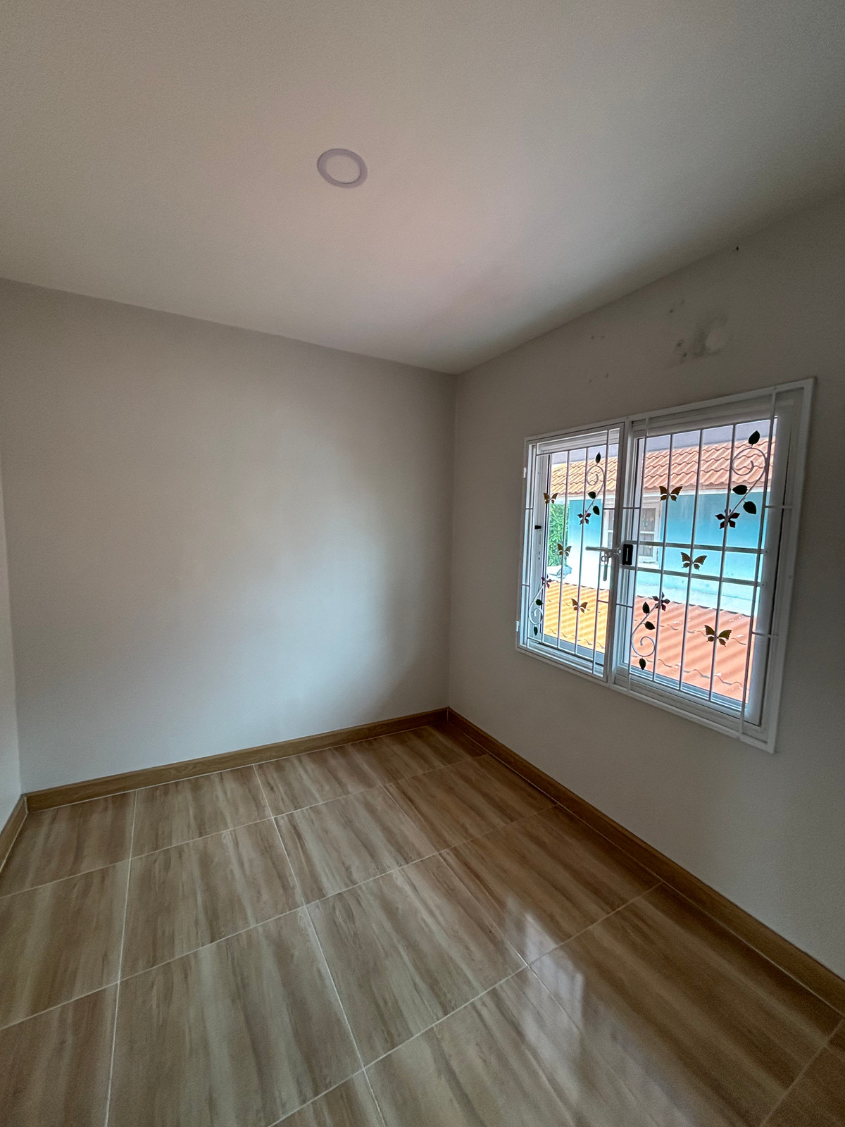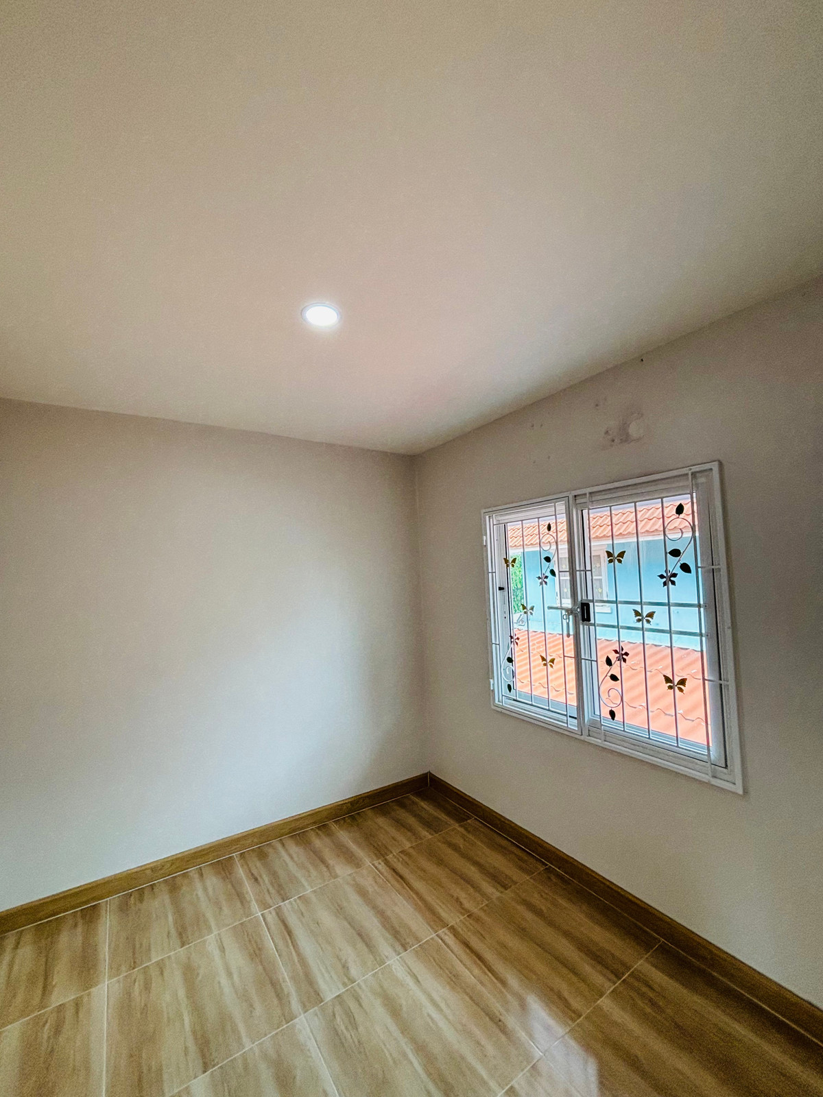 Newly renovated house for rent in Pruksa Village 28/1, near Bangpoo Industrial Estate. 3 bedrooms, 2 bathrooms.
