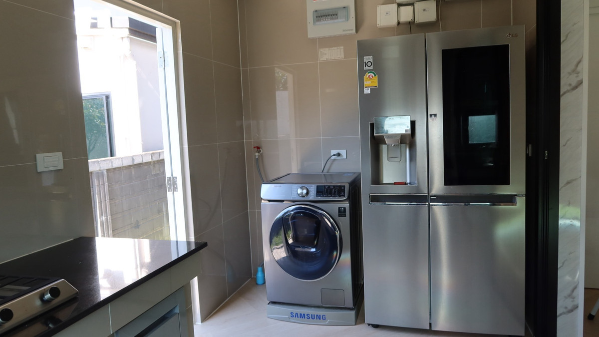 🏠 2-storey detached house for rent, corner house, wide area. 🏠 Setthasiri Pattanakarn : Setthasiri Pattanakarn 📍Location: Soi Pattanakarn 87, New Pattanakarn Road. Prawet District/District 🔥 Single house with some furniture, rent only 130,000 baht/month. 🔥 Free common fees, 1 year rental contract 🔥 2 months home insurance, 1 month advance rent Details : 🌲 2-story detached house, corner house 🌲 Area size 99 square meters, usable area 181 square meters. 🌲 Direction: Facing north, not hot. 🌲 4 bedrooms, 3 bathrooms, 1 kitchen, 1 balcony, storage under the stairs. 🌲 There is a yard in front of the house. and private garden next to the house Spacious space 🎉 5 air conditioners in every room, 3 water heaters 🎉 Kitchen counter, gas stove, range hood, large refrigerator, washing machine 🐶 Pet friendly🐱 🚘 Parking for up to 4 cars in the house. Facilities within the house: 🎉 5 air conditioners in every room, 3 water heaters 🎉 Kitchen counter, gas stove, range hood, large refrigerator, washing machine 🎉 CCTV camera in parking garage 1 point 🎉 Anti-theft alarm 🎉 Door to enter the house, digital door lock 🎉 The parking garage has a roof that is not hot. 🎉 There is a storage room under the stairs. 🌳Facilities : - Clubhouse - Salt system swimming pool - Fitness room with garden view - Steam Room - Multipurpose room - Big public park, playground - Access Card Control - Security system 24 hours a day. 🎉Nearby places: - Community mall in front of the village - Airport Link Hua Mak - Tesco Lotus On Nut 80 : 3.9 km. - Maxvalue Phatthanakan: 4.7 km. - Seacon Square: 5.5 km. - Paradise: 6.2 km. - London Street : 6.2 km. - Central Bangna: 7.9 km. - Big C On Nut: 8.1 km. - The Paseo : 8.6 km. - The Nine : 9.9 km. - Ramkhamhaeng University: 10 km. 🥰 Contact call/Line Contact number Ready to move in 1 Dec. 2025