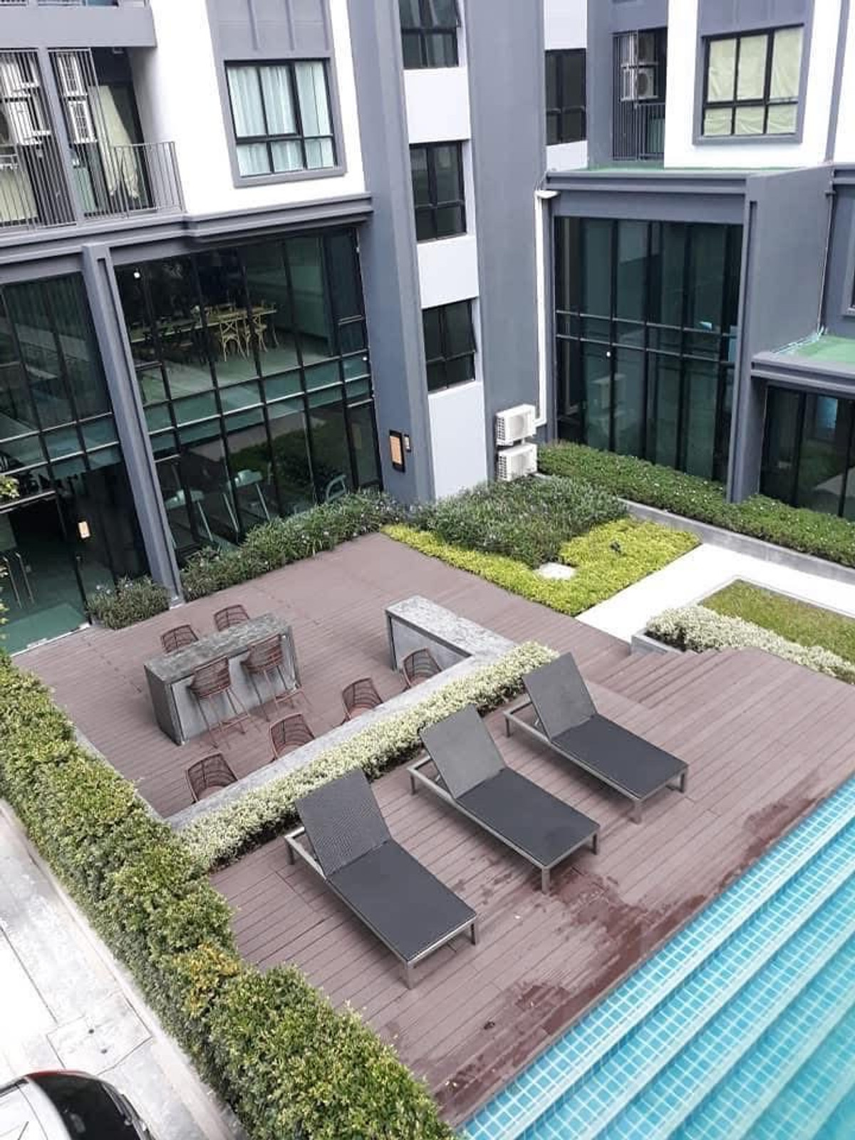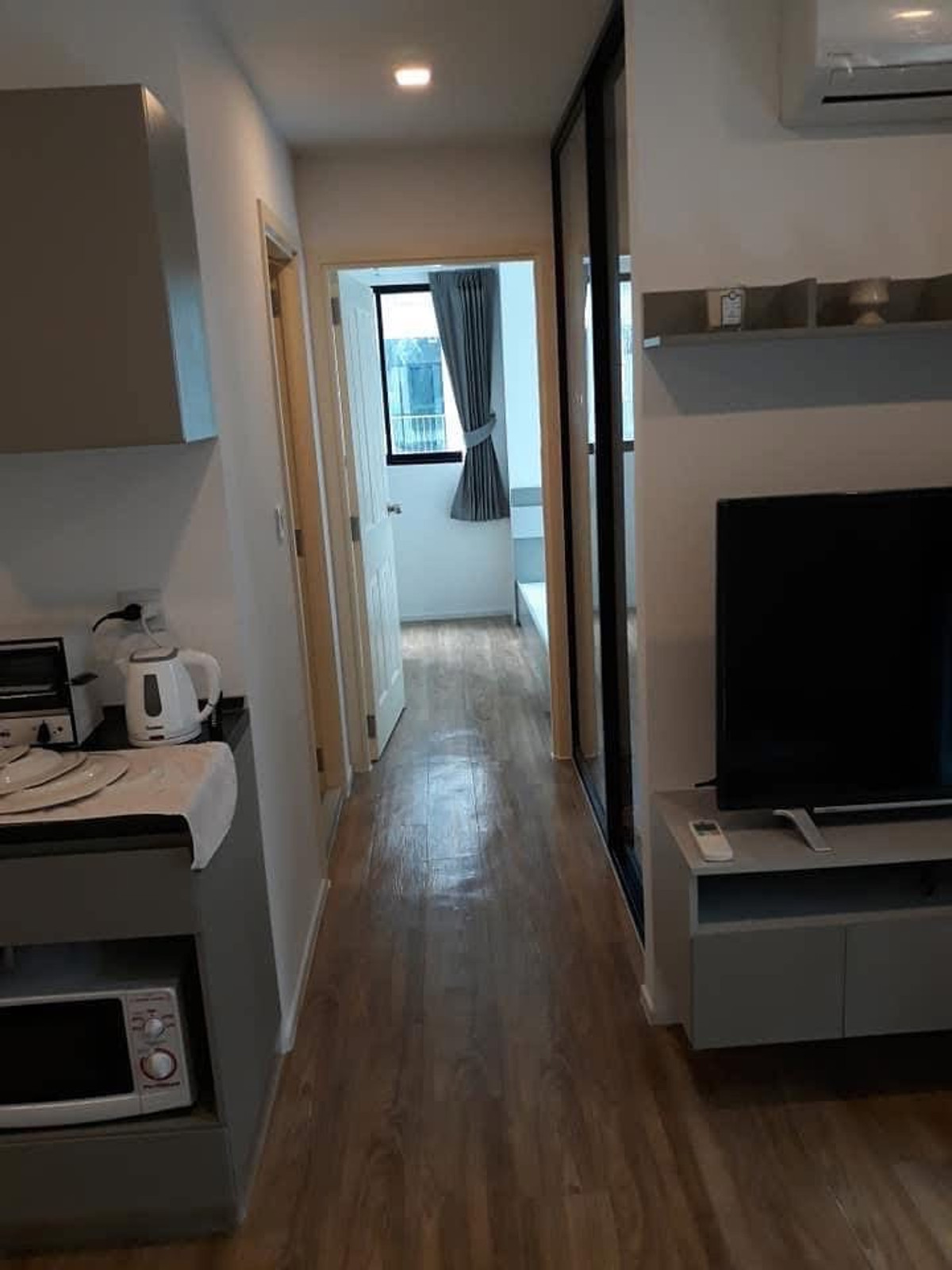 Usable area 34 sq m. : 2 bedrooms, 1 bathroom, 1 living room new room ready to move in Modern style decoration Build-in furniture Air conditioning installed in every room There is convenient parking, along with a fitness center, swimming pool, library, and meeting space Details... 🏢🌳Fully furnished room. Ready to move in [2 bedrooms, 1 bathroom, 1 living room with kitchen set. *Air conditioner installed in every room] - Bedroom: Wardrobe, built-in dressing table Good quality Dunllopillo mattress, 5 feet - Bathroom: water heater Separate wet-dry areas - Living room: TV size 49 inches, installed Smart digital TV, can watch all HD channels ready. DVD Blu-ray player - Ready-to-use kitchen set, microwave, refrigerator - Washing machine - Good light blocking curtains installed. Complete 🏢🌳Common facilities complete, parking available - fitness, bicycles, treadmill, dumbbells, quiet library, spacious meeting area. Olympic size swimming pool and a beautiful garden on the rooftop With a table to sit and admire the mountain view and the sea breeze. Panoramic style - There is enough parking both inside and outside the building 🏢🌳There is a security system. and provides high privacy - Keycard entry and exit only on the floor - CCTV 24 hrs. - 24 hrs. security guard system - Room next to the fire escape. No noise, rest comfortably, have privacy 🏢🌳 Decorated with quality materials, beautiful, luxurious, modern style - Choose high quality furniture materials, like youre living in every piece - Flooring with beautiful wood pattern tiles - American standard bathroom set with glass doors separating the wet and dry areas 🏢🌳Beautiful view. The atmosphere is like coming to relax the balcony can see The swimming pool and mountains are wide and very well ventilated *Non-smoking building. There are smoke alarms in every part of the room 🏢🌳Near major important places. Facilities - Opposite Kasetsart University Sriracha Campus - In front of the project there are 7-11, Food Villa, various leading restaurants - Robinson Sriracha Department Store : 6km. (9 minutes) - Aeon Sriracha Department Store : 6.5km. (12 minutes) - Phayathai Sriracha Hospital : 6km. (9 minutes) - Bangsaen Beach : 20km. (23minutes) - Pattaya : 27km. (32minutes) Throughout my stay, the project took very good care of the residents. Next to the room is good, never had a problem, safe, has privacy, good parking.
