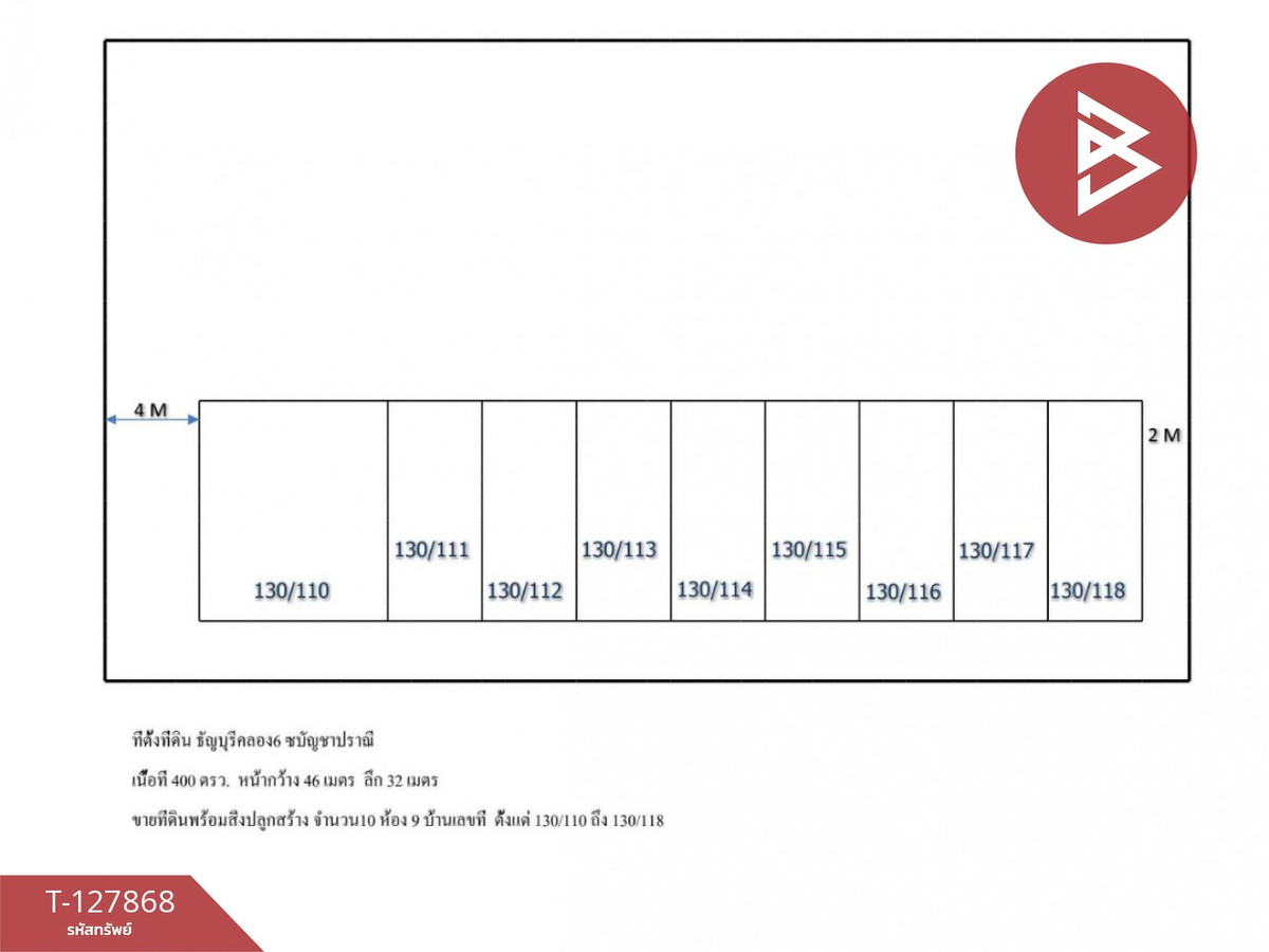 Land with buildings: Thanyaburi, Pathum Thani Location: Rangsit-Nakhon Nayok Road, Rangsit Subdistrict, Thanyaburi District, Pathum Thani Province Property code: T-127868 Type: Land Area: 1 rai 0.0 square wah Width: 46.00 meters Depth: 32.00 meters Additional details: Land for sale with buildings. Near the dormitory opposite Rajamangala Khlong 6, there are 10 rooms The first 1-2 rooms are double rooms, the walls go through. The rest are single room size 4x11 m., every room has its own bathroom. Corner room price 5,500, the rest 5000 per room. There is a transformer from the electricity authority. Water supply section. 2 houses that request water supply in the region The rest uses the total meter. The whole piece of land is 46 m wide and 32 m deep. Nearby places Rajamangala University Klong 6 Comfortable apartment Thanyaburi Mansion Wilaiwan Place Suitable for investment For rent Gas station make a parking lot Run a convenience store. Make 7-Eleven Price: 11,500,000 baht Map link: https://maps.google.com/?q=14.03607800,100.73566600 **We have a free loan arrangement service. Ready to give advice Available from every bank** **with special interest rates and a maximum credit limit of 90-100% of the appraised value** If interested, ask for more information or make an appointment to see the house at Tel : Contact number (agent code 2974) Line ID : thank777 Tel : Contact number Nok (agent code 2974-1) Line ID : radchada2456 Callcenter : Contact number Interested in viewing more than 3,000 additional properties www.tb.co.th The Best Property Agent CO,.LTD. Leader in brokerage business Full service real estate agent With professionalism, use of technology and creative innovation. To deliver the best service for you Providing services in buying, selling, and renting real estate.