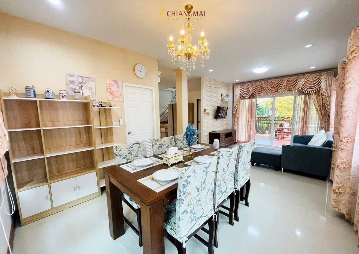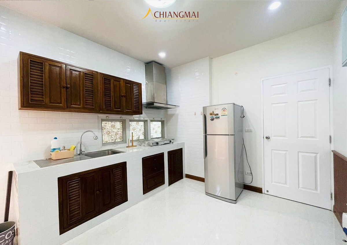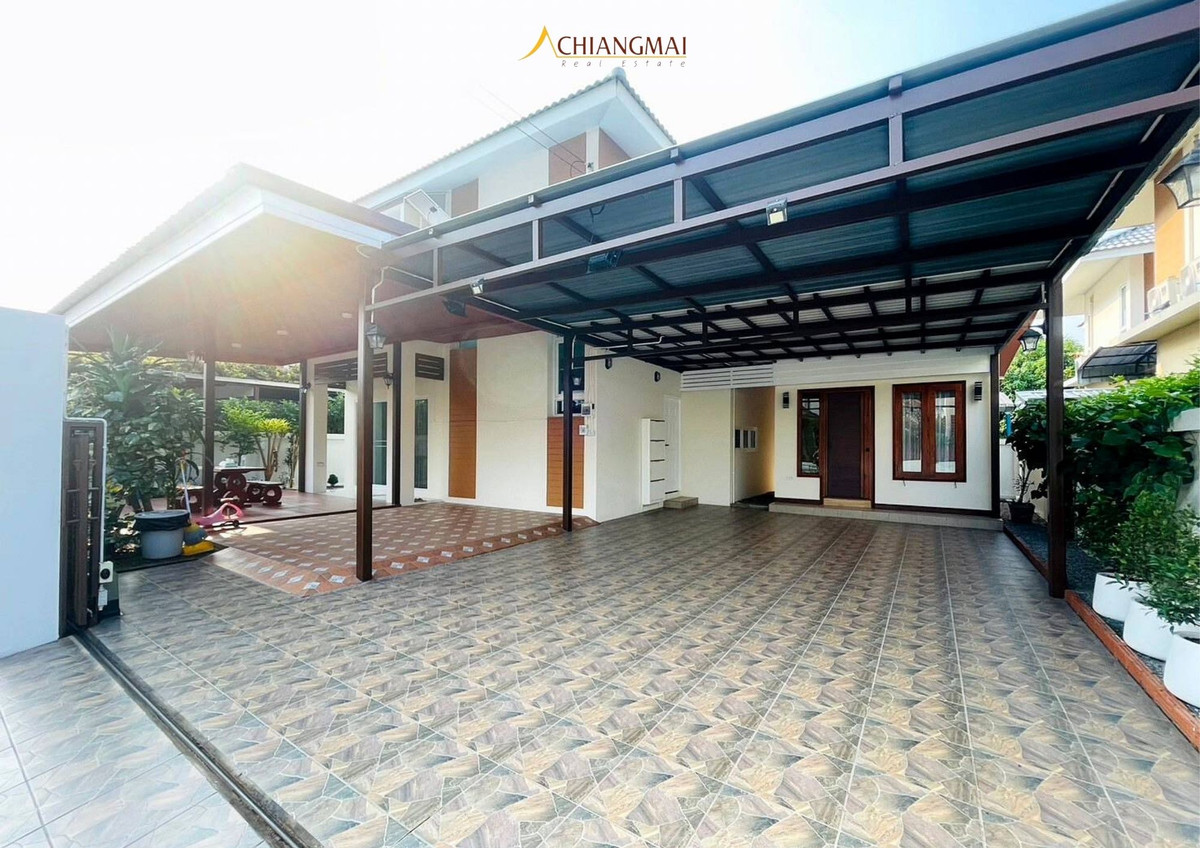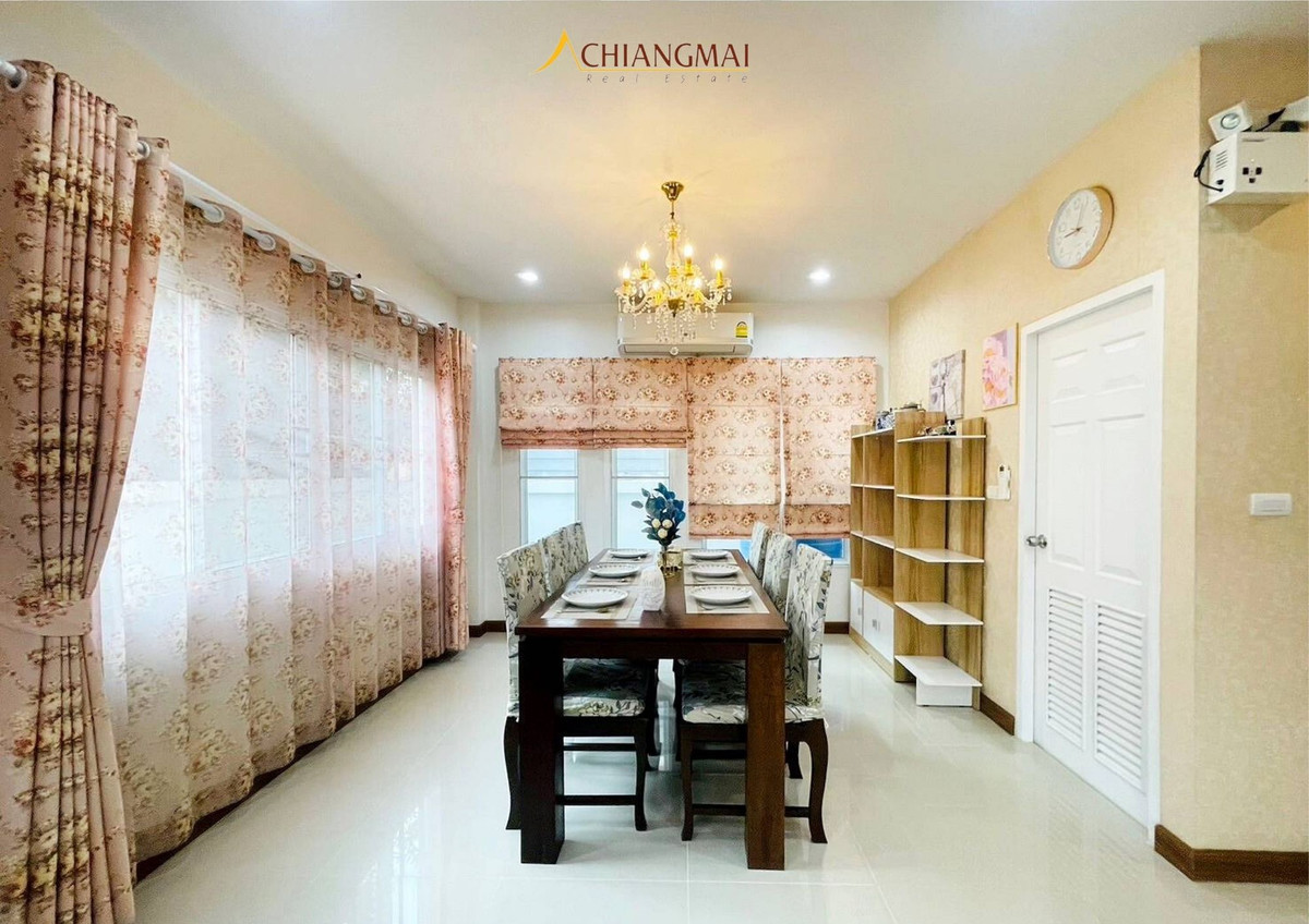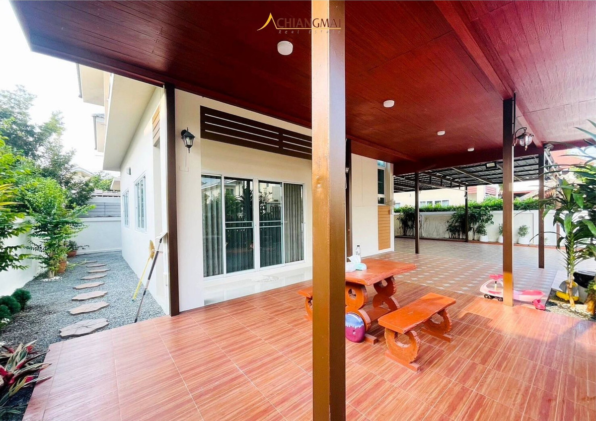 S2490 For sale/rent, 2-story detached house, fully furnished. (Khabodi Village, San Phak Wan, Hang Dong) 4 minutes from Kad Farang Village Details: 4 bedrooms, 3 bathrooms, 2 - 4 parking spaces, 1 western kitchen. , living room, dining area • 4 bedrooms, 3 bathrooms, 2 parking spaces, 2nd floor balcony • 1 large bedroom with ensuite bathroom • 1 kitchen in the house And the outdoor kitchen is connected to the washing zone and garden • There is a washing machine. Microwave and complete kitchen equipment• There is air conditioning in every bedroom. and water heater • and electric car charging point (TOU meter) Selling price: 4,200,000 baht Rental price: 35,000 baht / month / 1 year lease • Usable area: 200 square meters • Land size: 60 square wah Facilities: public park and 24-hour security guard Location: Lanna International School 7 minutes, North Hill Chiang Mai Golf 8 minutes, Big C Mae Hia 12 minutes, etc.