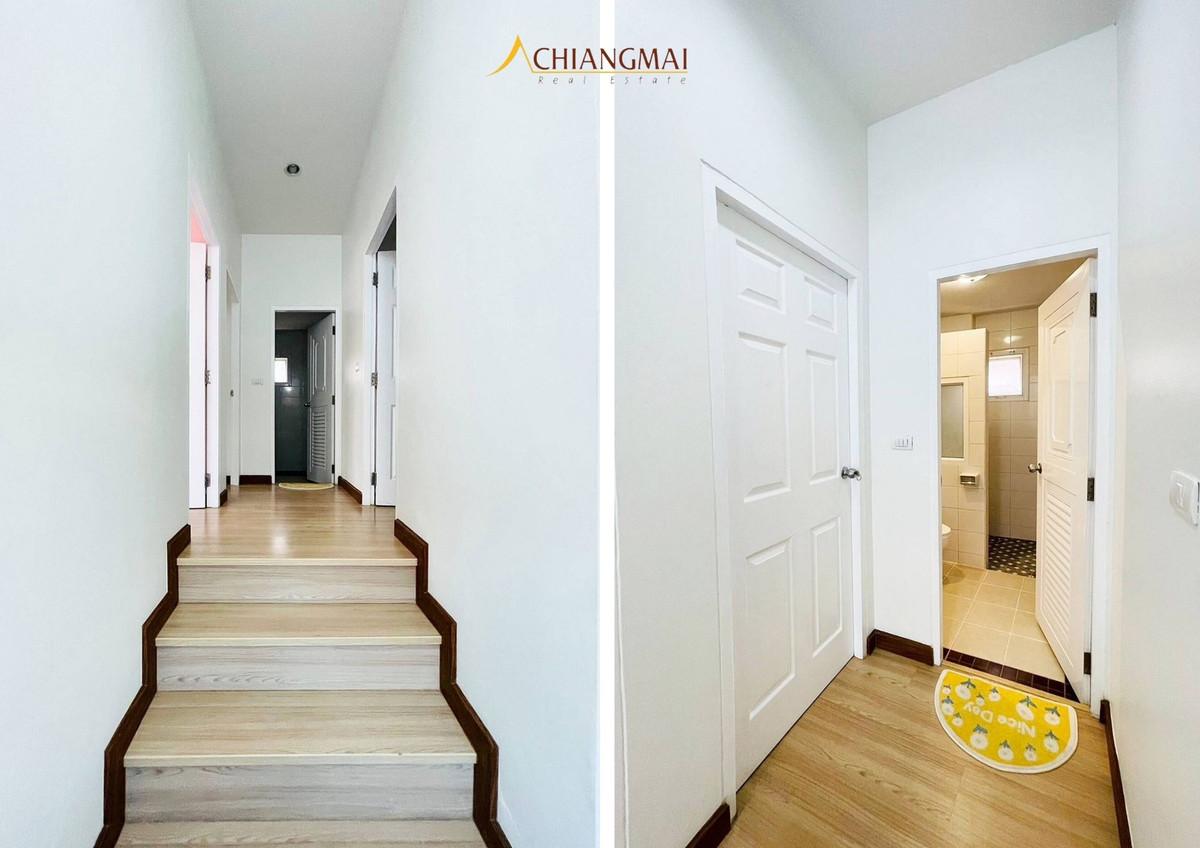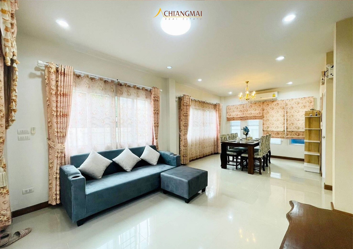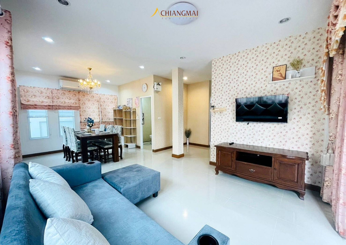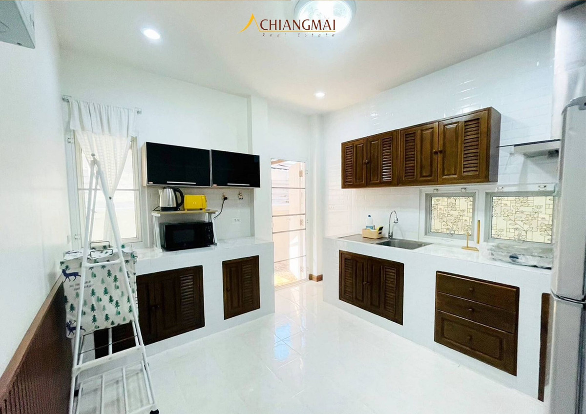 S2490 For sale/rent, 2-story detached house, fully furnished. (Khabodi Village, San Phak Wan, Hang Dong) 4 minutes from Kad Farang Village Details: 4 bedrooms, 3 bathrooms, 2 - 4 parking spaces, 1 western kitchen. , living room, dining area • 4 bedrooms, 3 bathrooms, 2 parking spaces, 2nd floor balcony • 1 large bedroom with ensuite bathroom • 1 kitchen in the house And the outdoor kitchen is connected to the washing zone and garden • There is a washing machine. Microwave and complete kitchen equipment• There is air conditioning in every bedroom. and water heater • and electric car charging point (TOU meter) Selling price: 4,200,000 baht Rental price: 35,000 baht / month / 1 year lease • Usable area: 200 square meters • Land size: 60 square wah Facilities: public park and 24-hour security guard Location: Lanna International School 7 minutes, North Hill Chiang Mai Golf 8 minutes, Big C Mae Hia 12 minutes, etc.