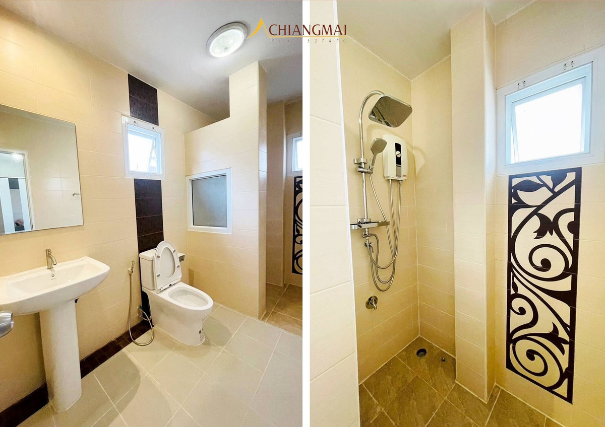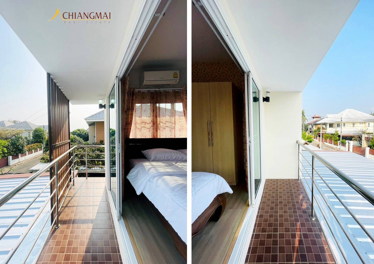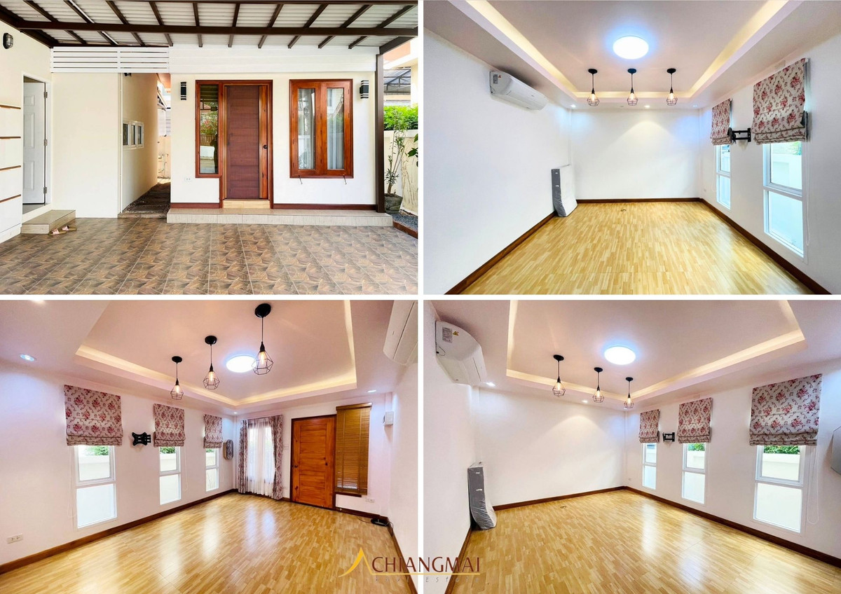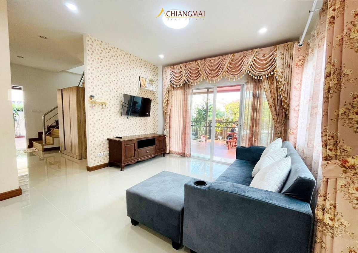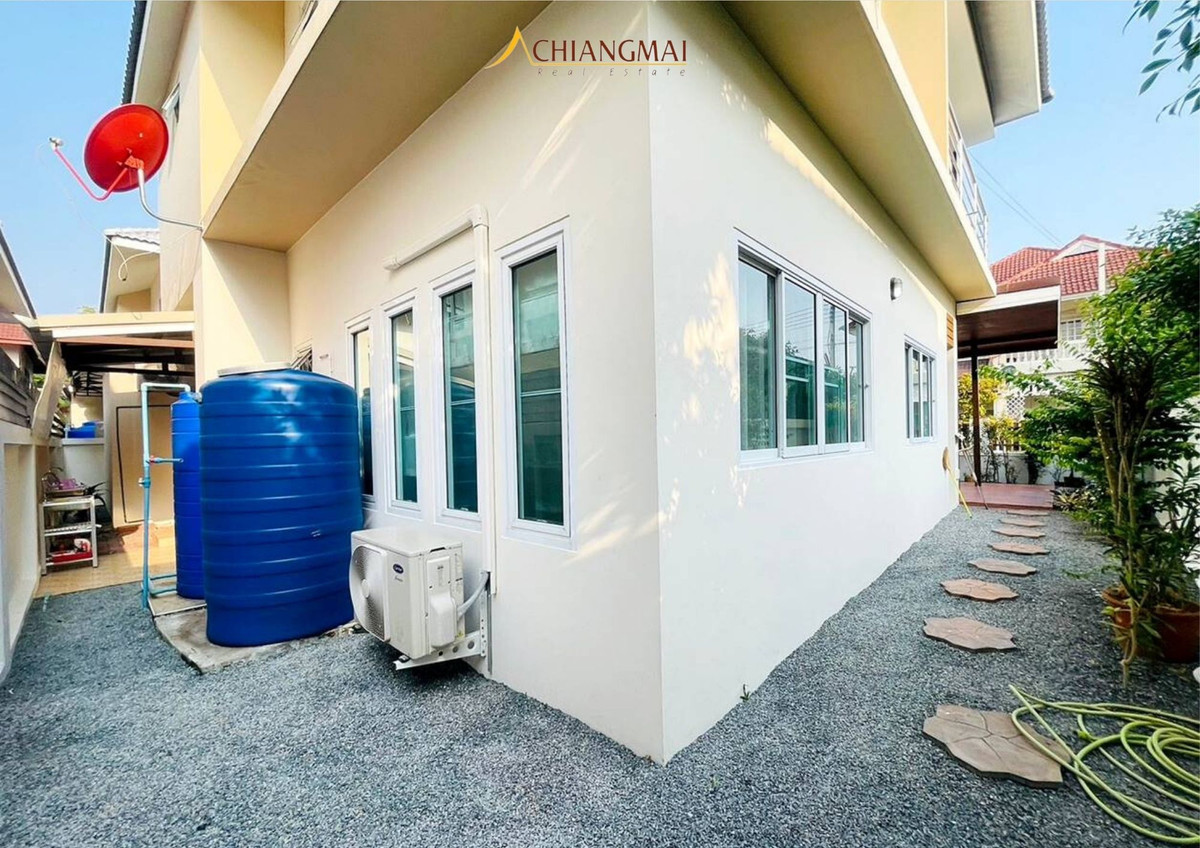 S2490 For sale/rent, 2-story detached house, fully furnished. (Khabodi Village, San Phak Wan, Hang Dong) 4 minutes from Kad Farang Village Details: 4 bedrooms, 3 bathrooms, 2 - 4 parking spaces, 1 western kitchen. , living room, dining area • 4 bedrooms, 3 bathrooms, 2 parking spaces, 2nd floor balcony • 1 large bedroom with ensuite bathroom • 1 kitchen in the house And the outdoor kitchen is connected to the washing zone and garden • There is a washing machine. Microwave and complete kitchen equipment• There is air conditioning in every bedroom. and water heater • and electric car charging point (TOU meter) Selling price: 4,200,000 baht Rental price: 35,000 baht / month / 1 year lease • Usable area: 200 square meters • Land size: 60 square wah Facilities: public park and 24-hour security guard Location: Lanna International School 7 minutes, North Hill Chiang Mai Golf 8 minutes, Big C Mae Hia 12 minutes, etc.