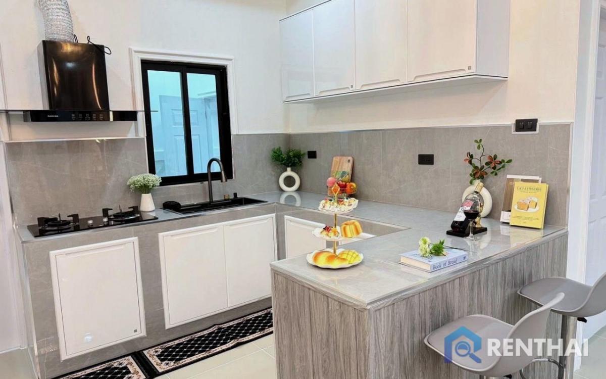 Listing code: #RT04006 Sale price: 3,990,000 baht - 3 bedrooms, 3 bathrooms - Land size 38 sq.w. - Usable area 100 sq.m. - 1 floor - Garden view - Thai quota - Fully furnished Location: Nong Prue, Pat