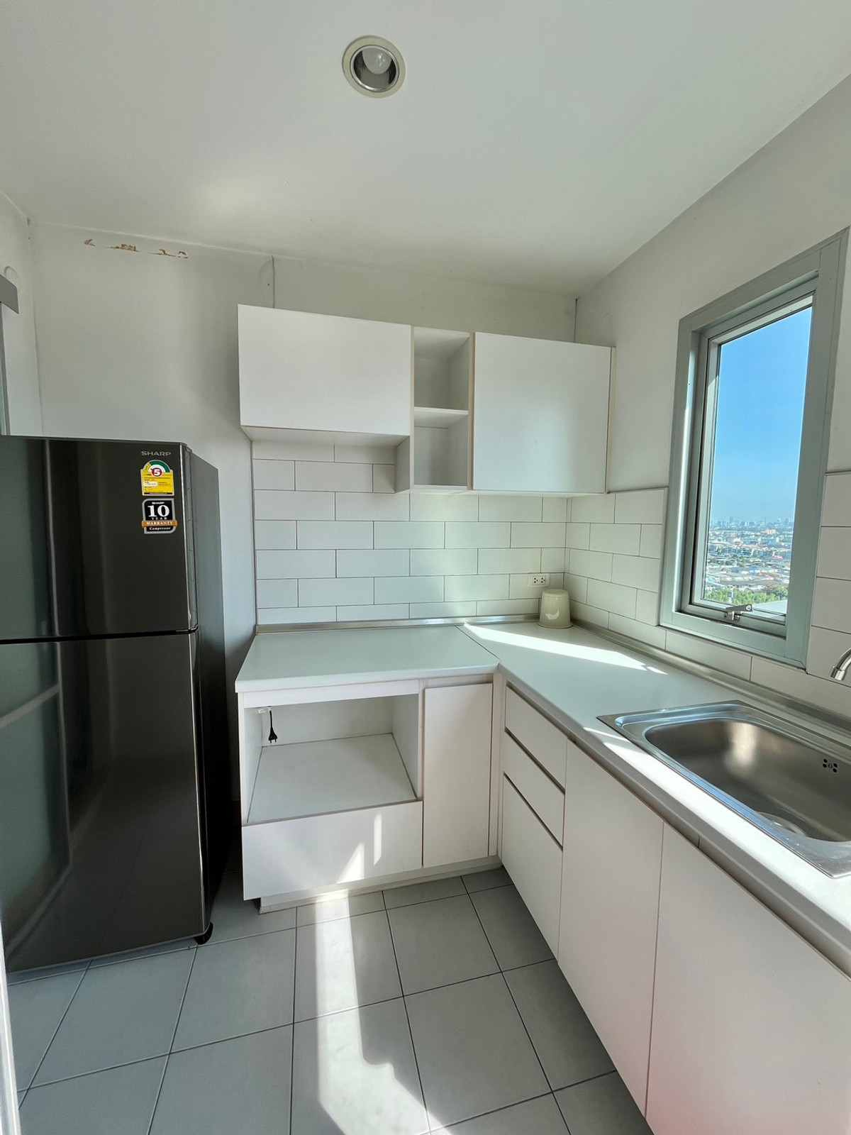 Condo ready to move in Fully furnished: size 35 sq m, 19th floor, beautiful view 1 bedroom, 1 bathroom, 1 living room, 1 separate kitchen, 2 air conditioners The room is decorated with built-in furniture in clean white tones. Modern double layer curtains, living room with shoe cabinet. Complete with multi-purpose storage cabinets, 32-inch flat-screen TV, 2-seat leather sofa, dining table , built-in kitchen. There is a Panasonic refrigerator. and washing machine bedroom There is a wardrobe with built-in storage cabinets, an SB bed with a good quality rubber mattress . The project has a 24-hour security system with CCTV cameras. and key card system, swimming pool, fitness Contract: 10,000 baht per month, minimum 1 year contract Contact: Click to see contact phone number Line ID: rungraweech19