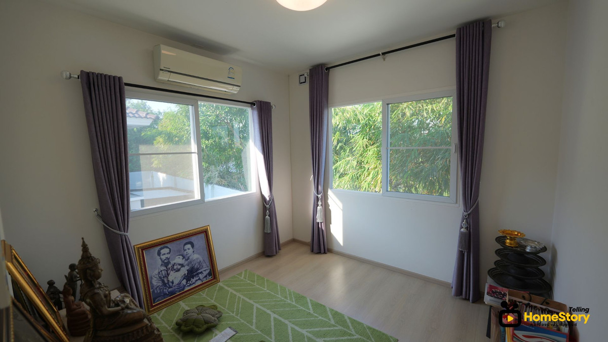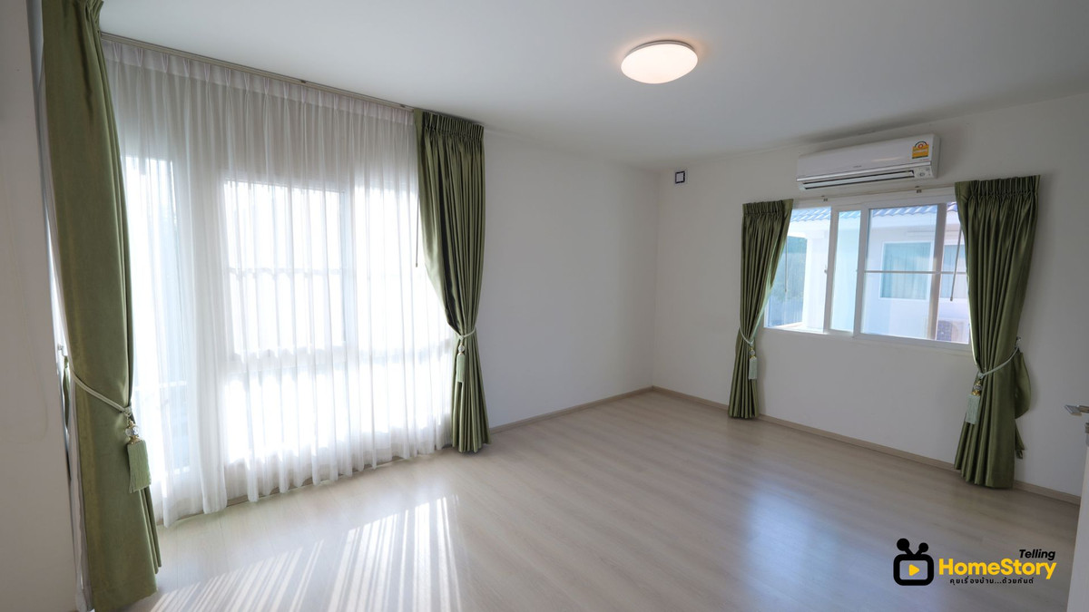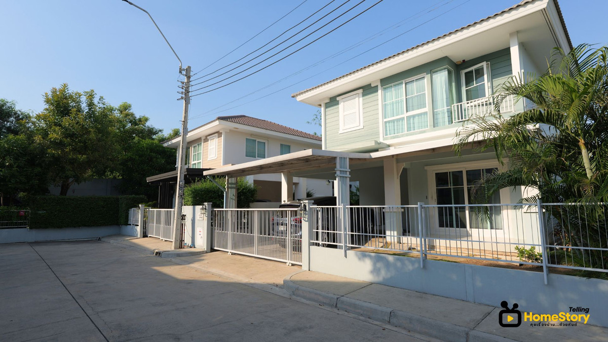 Two-story detached house for sale, 3 bedrooms, 2 bathrooms, Chaiyapruek Srinakarin Project (Gant-320) Land area: 51 square wah 2-story house with 3 bedrooms, 2 bathrooms, 1 living room, 1 kitchen, 2 parking spaces Extended garage and front porch Usable area: 114 square meters (excluding extensions) Includes 3 air conditioners, water pump, water tank, water heater, and curtains Beautiful, clean house in good condition, ready to move in Built in 2018 The project features a swimming pool, fitness center, garden, lake, and pleasant atmosphere. 24-hour security. Common area fee: 43 baht/square wah Selling for only 4.75 million baht Contact Khun Kant: Tel: Contact number, Contact number Line: @GantProperty