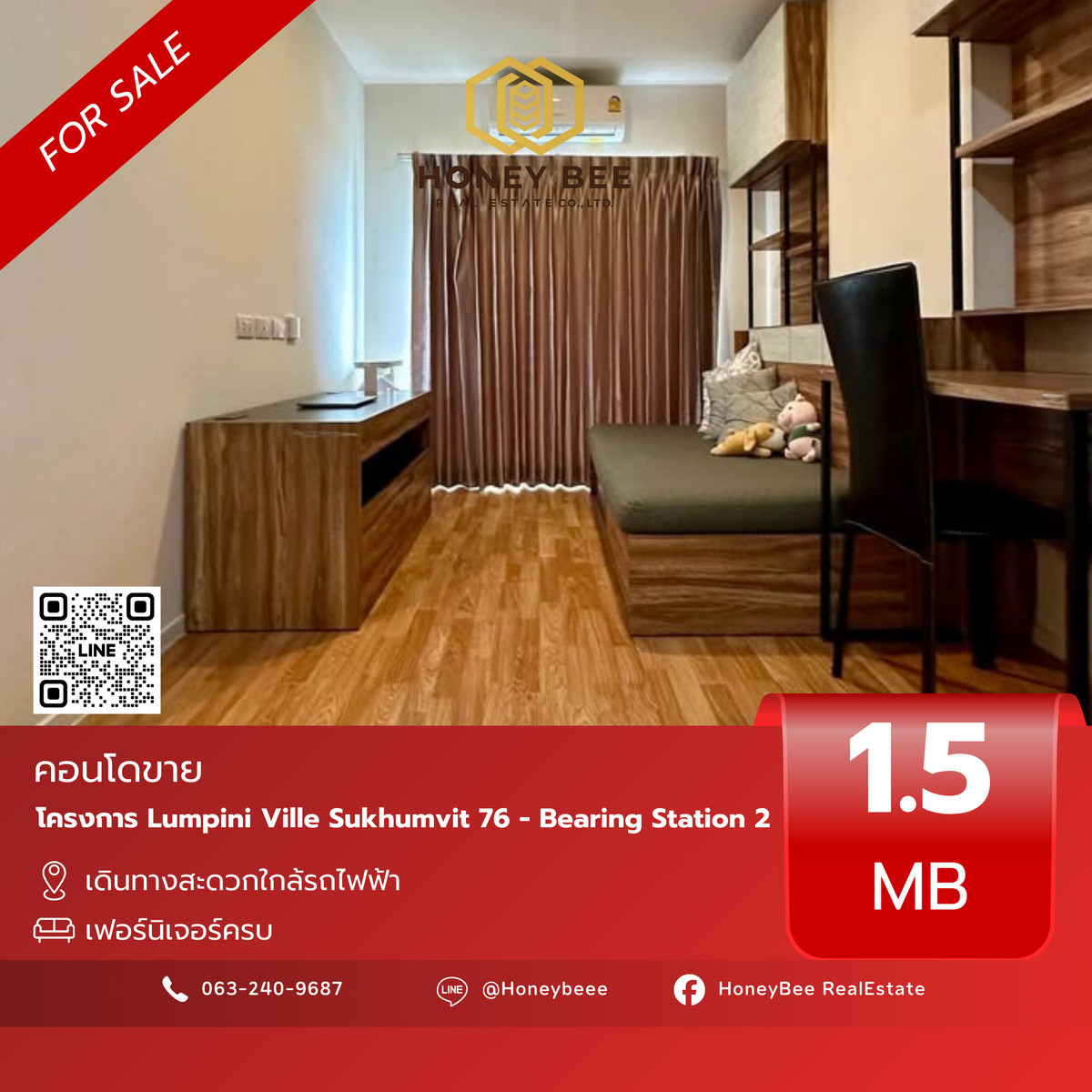 ❗️Lumpini Ville Sukhumvit 76 - Bearing Station 2, fully furnished, very good condition, beautiful room 🔥 📍Code BH02 ✨Selling for only 1.5 million baht ☀️Details - Size 26.23 sq m. - 6th floor, Building A - 1 bedroom - 1 bathroom 📲 Interested in making an appointment to view the condo 😊 Contact admin 📞 : Contact number 👉🏻 Line link: https://page.line.me/Honeybeee ❇️ Line id : @Honeybeee (has 3 e's) 🐝 Honey Bee Real Estate 🍯