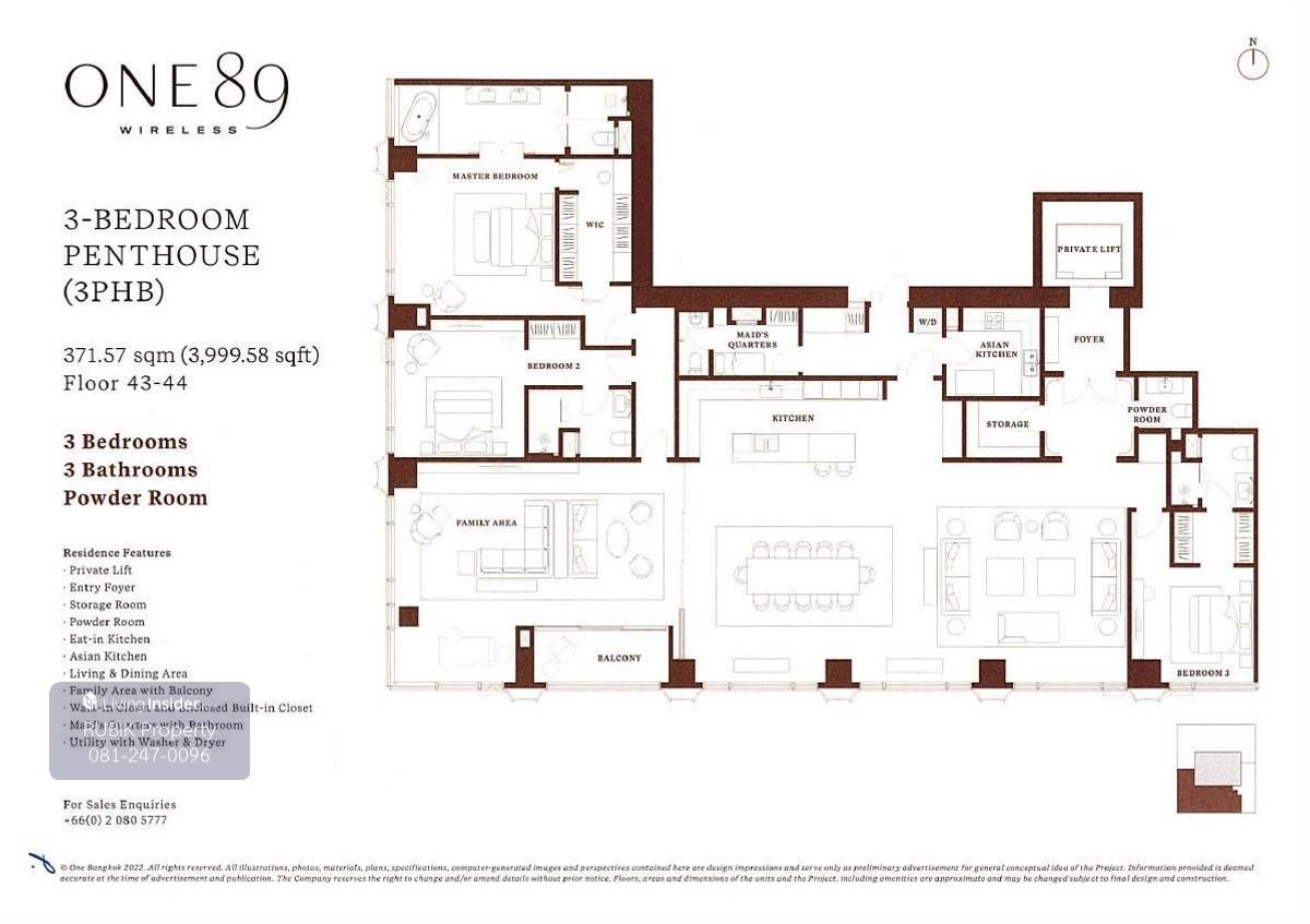 🌟 PENTHOUSE 3 Bedrooms – ONE89 Wireless (One Bangkok) Rare Unit on 44 Floor🌟 RB1438