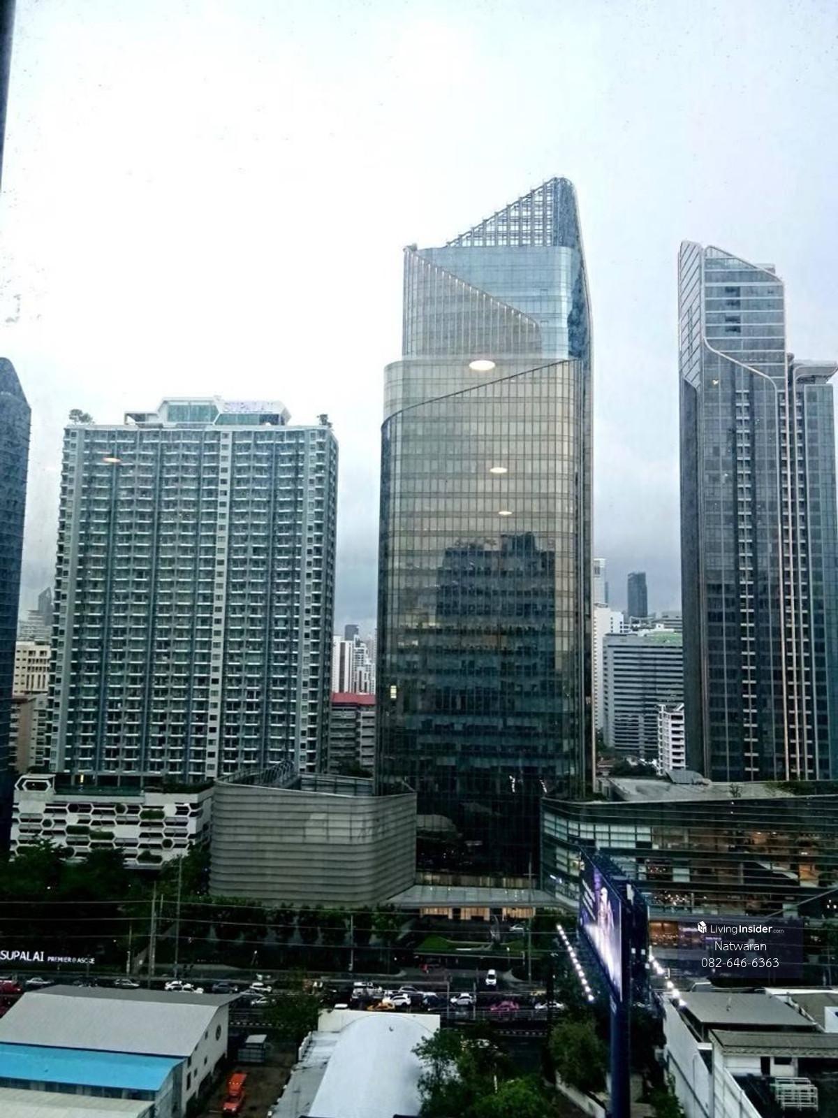 Condo Life Asoke, next to MRT Phetchaburi, large room Size 35 sq.m. (1 Bed Plus) 1 Master Bedroom + 1 Extra Room 18th floor, South Building City view seeing Singha Estate Building Next to MRT Phetchab