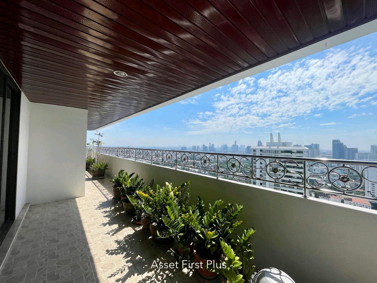 Condo 452 sq m, 3 bedrooms, Thai kitchen, has a maids room zone. Suitable for families, wide balcony, panoramic view, private elevator, pets allowed.
