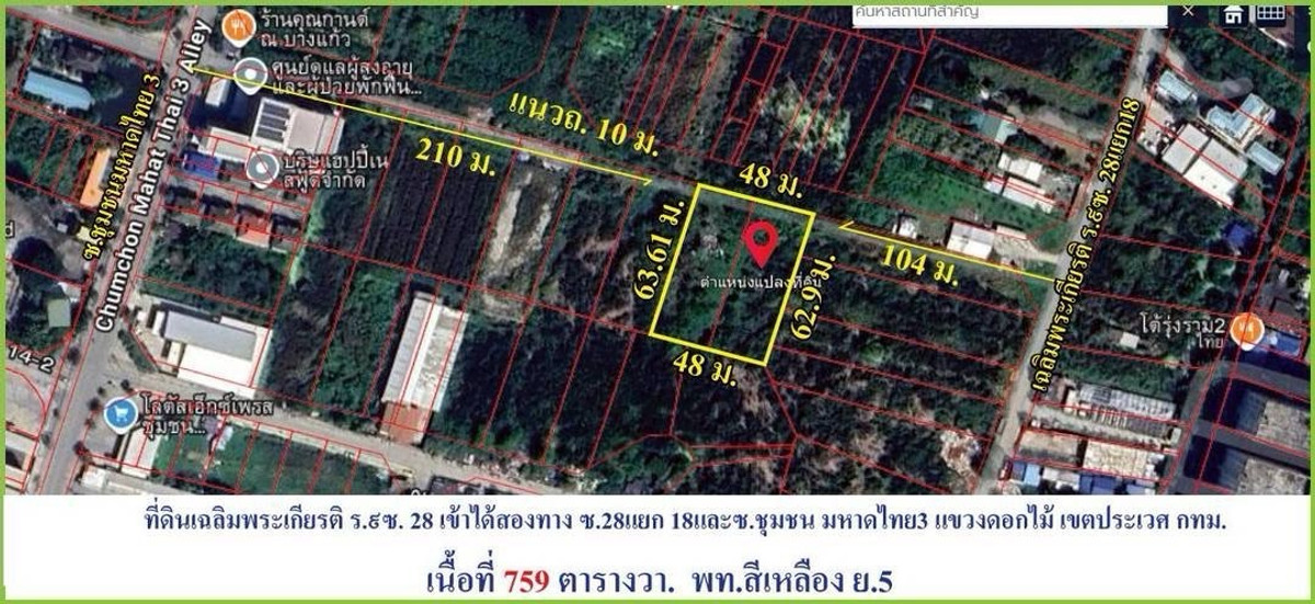 Land for sale at a special price, lower than the market! Beautiful plot, rectangular shape - Soi Chaloem Phrakiat 28, Intersection 14, Prawet District, Bangkok ***Yellow layout - suitable for building Residence Office Warehouse / Warehouse Property details Area: 759 sq m. Price: 33,000 baht/sq m. Total price: 25,047,000 baht Tax-Transfer: Owner takes full responsibility Price negotiable Location highlight Public road in front of the land, 8 meters wide (under road improvement) Near Ramkhamhaeng University 2, only 1.5 km. Enter Soi Chaloem Phrakiat 28, only 2.5 km. Suan Luang Rama IX, just 3 km. Meter Plot coordinates https://maps.app.goo.gl/yC4Benq9NsJRDS1Z6 Interested in making an appointment to see the place or ask for more information Tel. Contact number Mon Line Id: monthap Loan procurement service Accepting consignments for sale-rent, houses, land, condos, apartments, commercial buildings, factories, Bangkok and surrounding areas #Land for sale in honor of His Majesty the King. #Beautiful plot of land for sale #Land for sale at special price #Selling land at a price below market #Selling land in Prawet