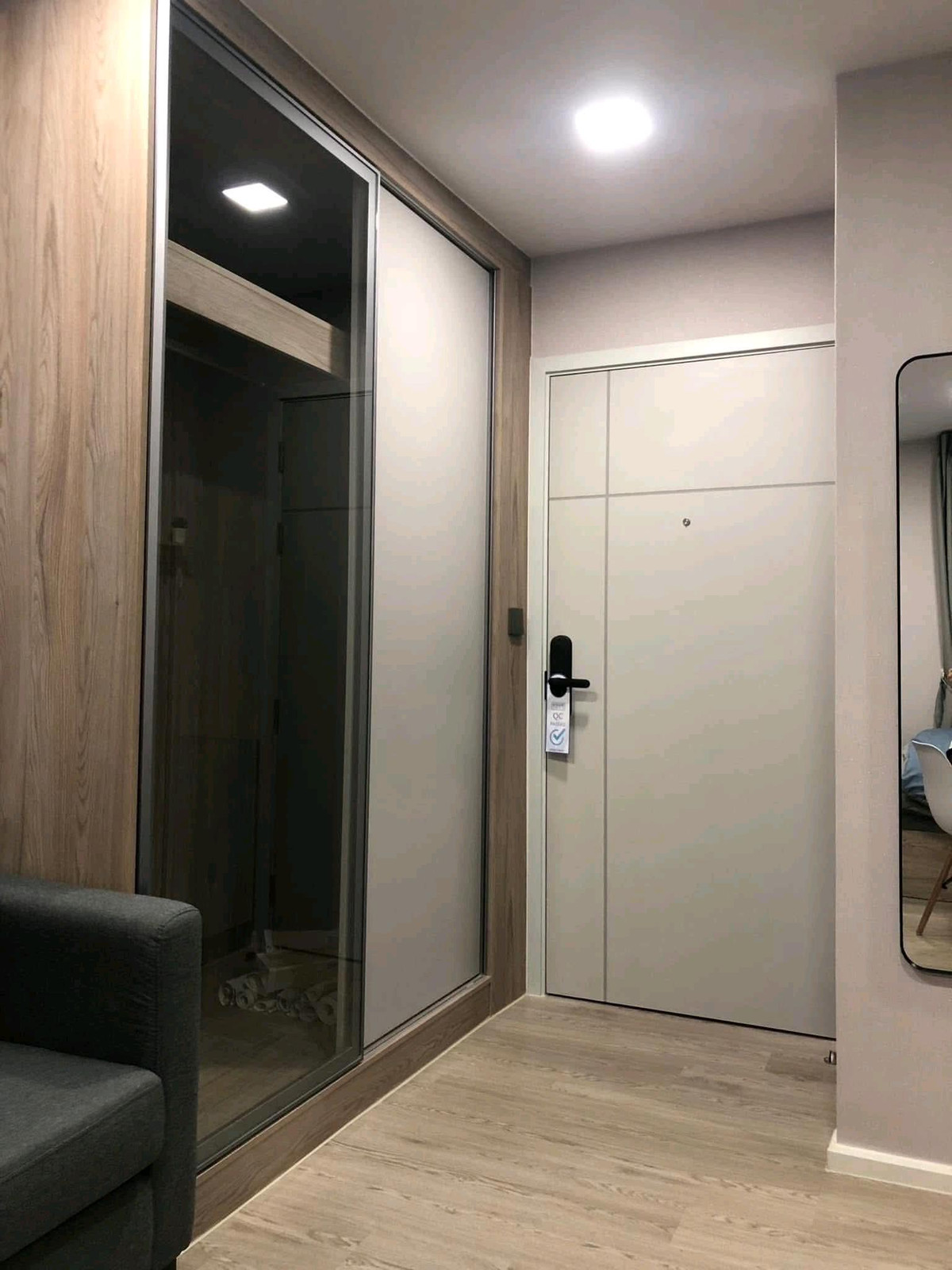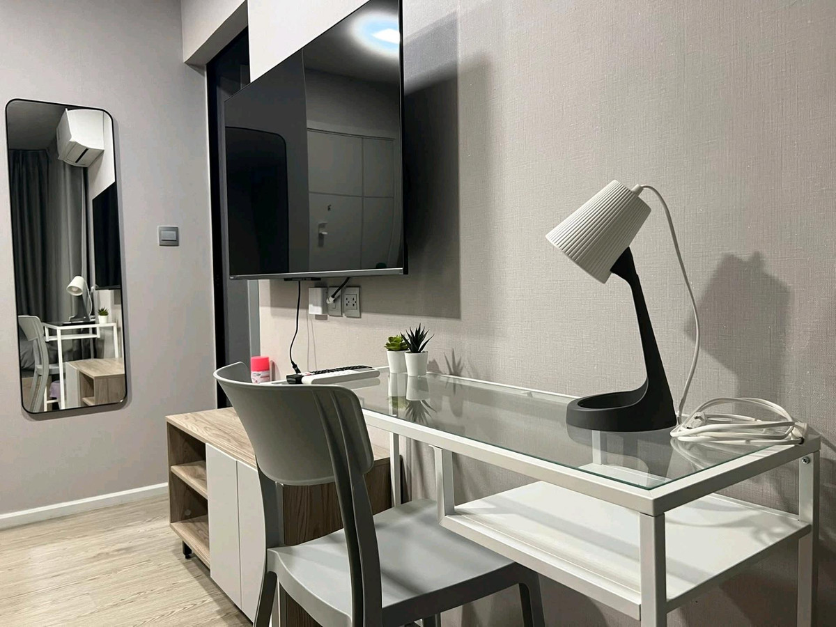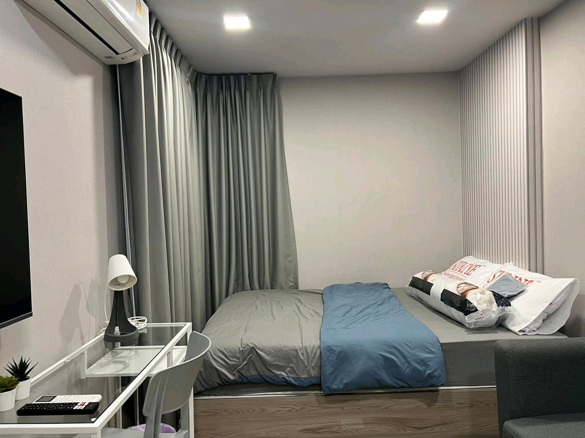 For rent KAVE TOWN COLONY ⭕️D323 ⭕️Building D, 3rd floor ⭕️Room no. 95/891 ⭕️Area 21.19 sq m. ⭕️TYPE : STUDIO EXCLUSIVE 🩷In the building near the entrance 🩷Very good position Same building as juristic person Garden view room 🩷Separate kitchen The proportions are clearly divided 🩷Everything in the room is new and new 🩷The project has a shuttle bus to pick up and drop off to Bangkok University 🩷In front of the project there is 7-11🏪 🔥1 year contract, rent 11,500/month🔥 (Water and electricity are calculated according to the actual meter. Free common fees) 🛋️Fully furnished and electrical appliances💡 ✅Smart TV 50" ✅Refrigerator 7.4Q ✅Microwave ✅Washing machine 8 kg. ✅Water heater ✅Mattress with 5 foot mattress ✅Sofa ✅Work desk With chair ✅ Large wardrobe ✅ Built-in shoe shelf set ✅ Built-in kitchen set ✅ Sanitary ware set ✅ Install wallpaper for the whole room ✅ 2-layer curtains CONTACT LINE : Pooapipoo TEL Contact number