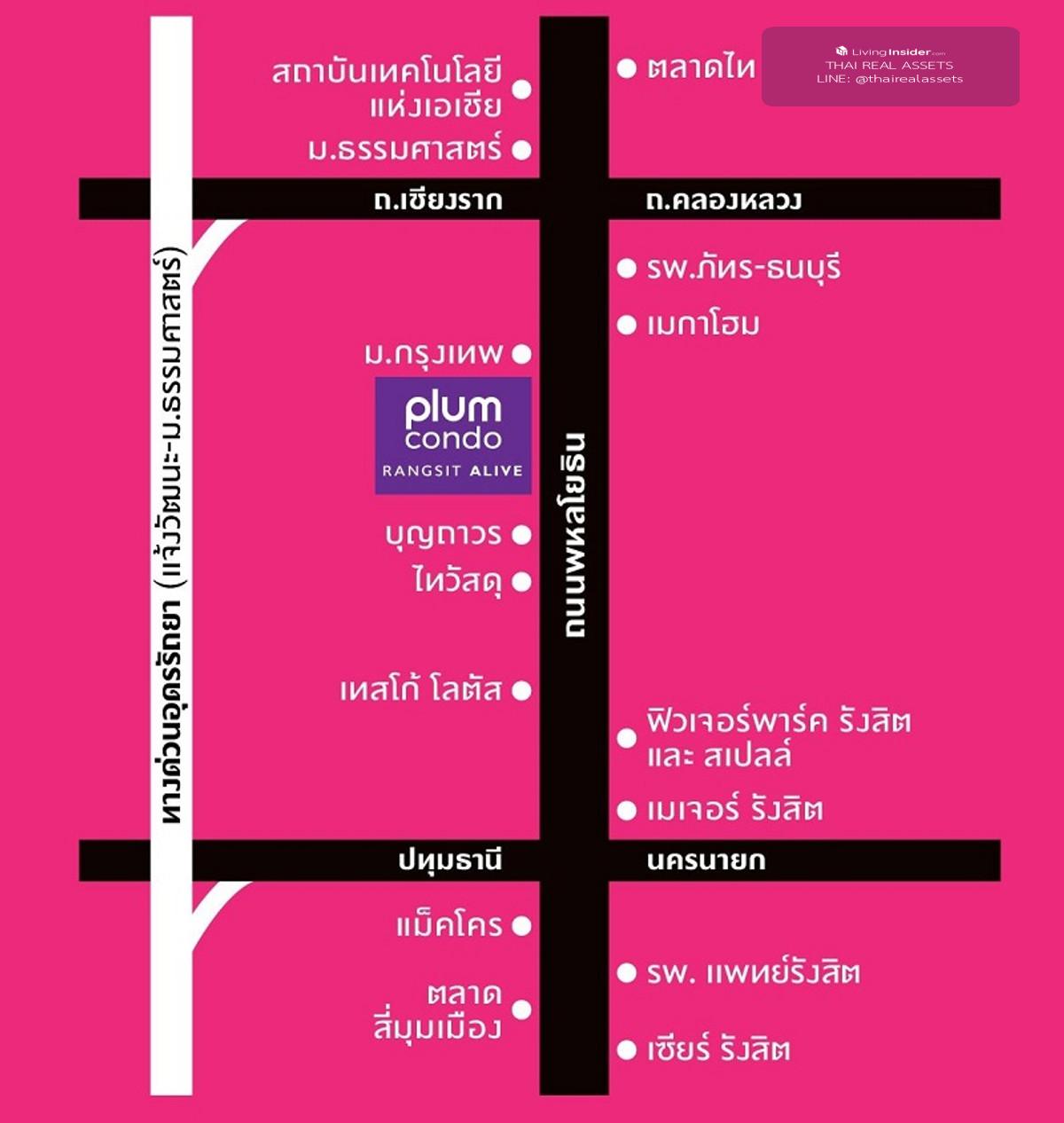 🌟 Cheapest for Rent! Plum Condo Rangsit ALIVE 1 ✅ Ready to move in! 💳 Rent: 10,000 THB/month (1-year contract) 🚫 No Co-Agent 🔑 2 months deposit + 1 month advance 🛋️ Fully furnished with electrical appliances 📲 Line ID: @thairealassets 🏢 Room Details 🛏 2 Bedrooms 1 Bathroom 📏 36 sq.m. 🏙 Building D = 2nd Fl. 🔢 Good unit number 🛍 Nearby Shopping & Lifestyle Park Avenue – 900 m Imagine Village – 1.8 km Tesco Lotus Khlong Luang – 6.2 km Makro Khlong Luang – 6.6 km Talad Thai – 8.3 km Future Park Rangsit & ZPELL – 13.9 km Tesco Lotus Rangsit – 14 km Major Rangsit – 14.3 km Central M (Future Project) – 16 km Thai Watsadu – 16.4 km Zeer Rangsit – 17.3 km Boonthavorn Rangsit – 17.6 km Big C Rangsit – 20.5 km Makro Rangsit – 21.5 km 🎓 Nearby Universities Bangkok University – 800 m Thammasat University (Rangsit Campus) – 5 km AIT – 6 km Rangsit University – 19 km RMUTT Rangsit Campus – 20.5 km