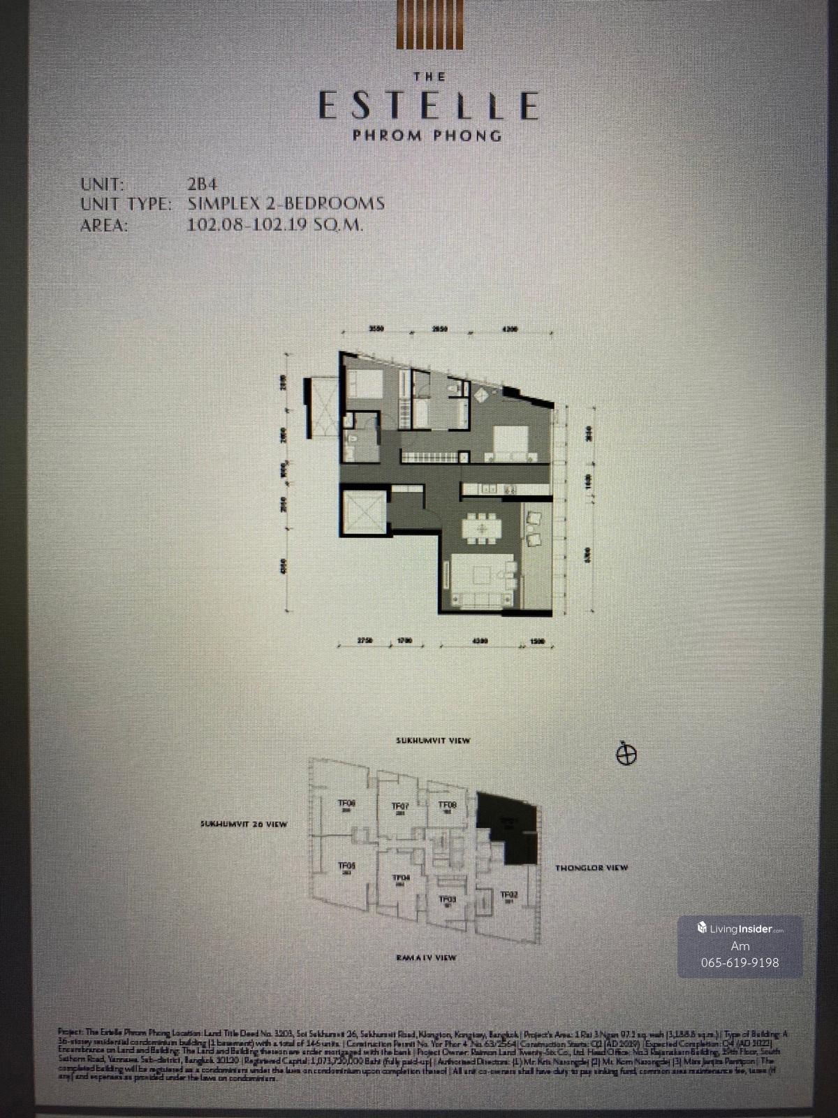 The Estelle Sukhumvit 26: 2bed 2bath 103 sqm. Sell: 38,000,000 Rent: 125,000/mth. Am: 0656199198
