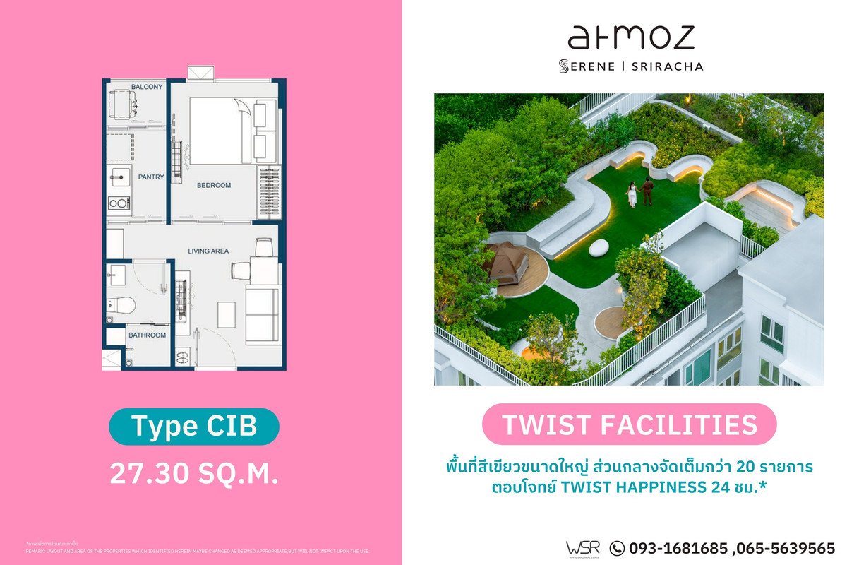 🦩 ATMOZ SERENE, the central area is fully equipped with more than 20 co-working activities, fitness, swimming pool and relaxation garden. Supports every lifestyle, starting at 1.59 million 📞 065-563-9565 💚 LINE: @whitesand