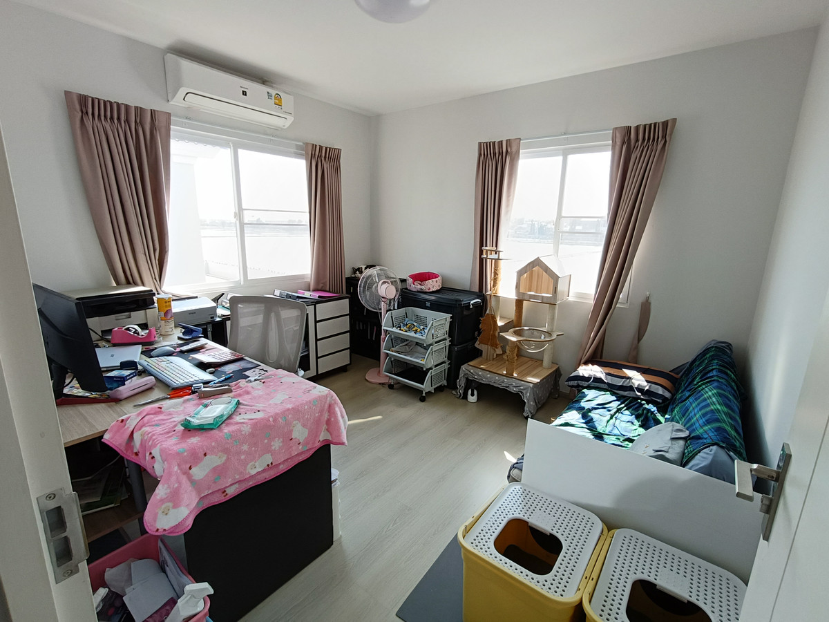 Semi-detached house with the atmosphere of a single house, house area 133 sq m, land area 36.3 sq m, 3 bedrooms, 2 bathrooms, one kitchen, can easily park 2 cars. The front of the house faces north. Located in a private alley. cute neighbor It is the last phase of the project. The house is 3 years old and in excellent condition. The owner has taken good care of it. Beautiful village environment It is a village with the most beautiful central area in the Rangsit area. And it is the only project of Land that has only detached houses and semi-detached houses. Makes it not crowded and chaotic There is a large lake in the middle of the village, a fitness center, a swimming pool, a playground, and a large garden. Convenient travel Near the entrance and exit point of Outer Ring Road No. 9, connecting to Motorway No. 7 - Don Mueang Tollway Expressway - Phahon Yothin Road - Rangsit Nakhon Nayok Road. and the two electric train lines are the Rangsit Red Line and the Khu Khot Green Line. Near educational institutions, hospitals, department stores. and many facilities What will you get? - Semi-detached house, usable area 133 sq m., area 36.3 sq m. - The house is ready to move in, curtains, 4 air conditioners in every room. Bathroom heater upstairs - Parking for 2 cars - 3 year old house Projects and facilities; - Villagio Rangsit Khlong Song project developed by Land and House Company. - Common fee 40 baht per sq m. - The central area has a large garden. Large lake, fitness center and swimming pool in the middle of the village. The atmosphere is shady and pleasant. - There is a security guard 24 hours a day. - The village law has been established. Nearby places -Future Park Rangsit, Tesco Lotus, Big C, Makro -Paolo Hospital Thammasat University Hospital Rangsit Hospital -Thammasat University, Rangsit University, Bangkok University, Siam International School - Don Mueang Airport Location and travel: - Red Line MRT Station Rangsit Market Station - Green Line BTS Station, Khu Khot Station -Don Mueang Expressway Tollway -Main roads Vibhavidi Rangsit and Phahon Yothin - Ring Road No. 9 connecting to Motor No. 7 #Location >>> https://maps.app.goo.gl/SU1EphuvQiwUKPUv5 *** Price 3,790,000 baht *** You can make an appointment to visit the actual location every day. If interested, the price can be discussed. Please contact: Apinya Mobile number: Contact number E-mail: Contact email