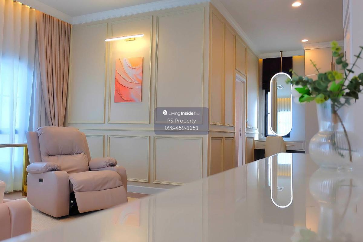 Price: 220,000 baht / month  Usable area: 407 sq.m.  Area: 96 sq.w. Floor: 2 5 bedrooms / 6 bathrooms / 1 living room / 3 parking spaces Amenities: CCTV, key card Access, fitness center, swimming pool, 24/7 security guard, co-working area, common area. Furniture included: TV, microwave, sofa, refrigerator, bed, air conditioner, water heater, Smoke Dispenser, shelf, TV cabinet, wardrobe, center table. House for rent! convenient transportation, near BTS, near the expressway, fully furnished Ready for viewing. Interested please contact: 📞Call center: Contact number 📱Hotline: Contact number 📲Whatsapp: Contact number 🖱️Line: @psproperty https://lin.ee/d8bpOBs Website: https://www.ps-property.co.th/
