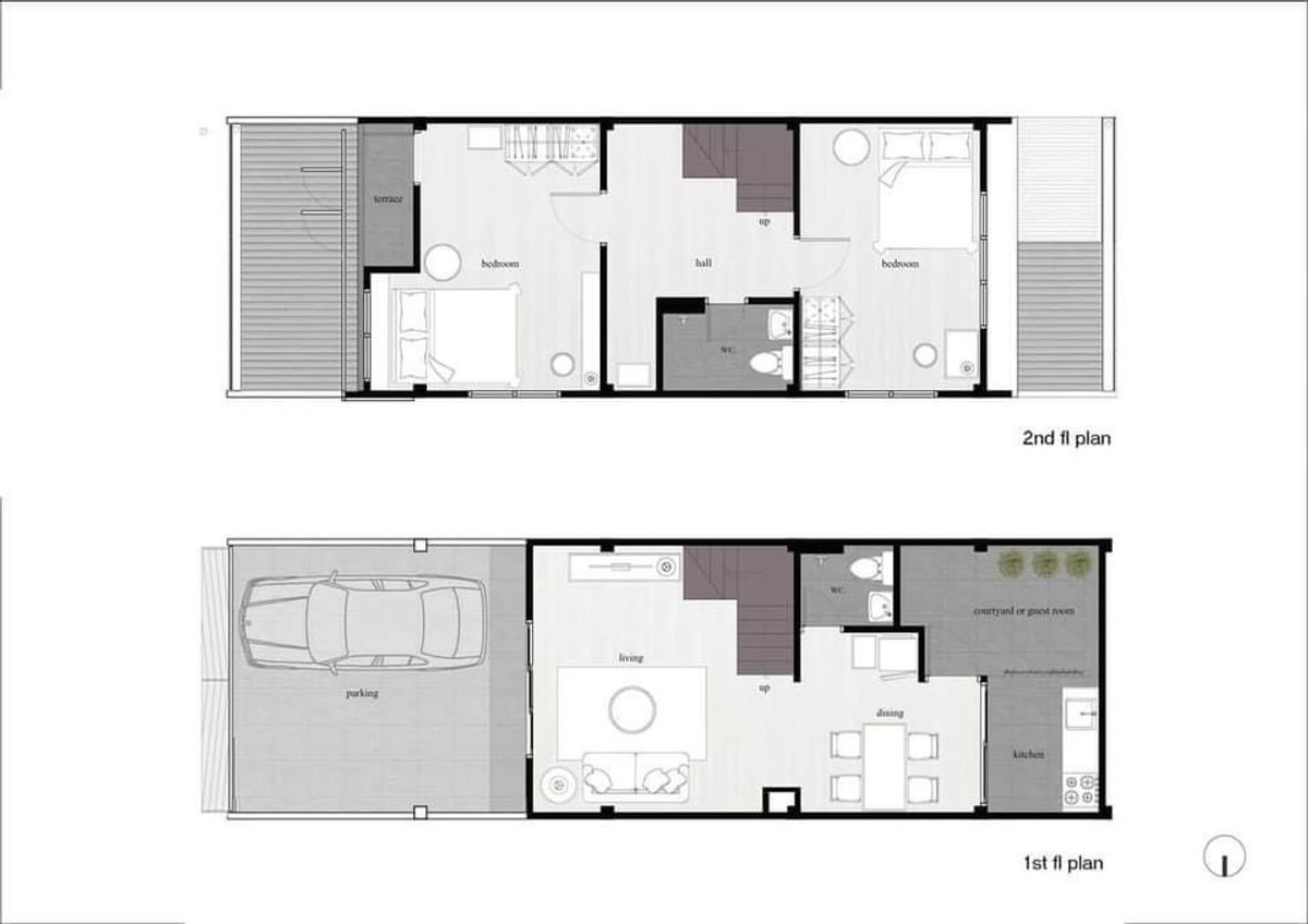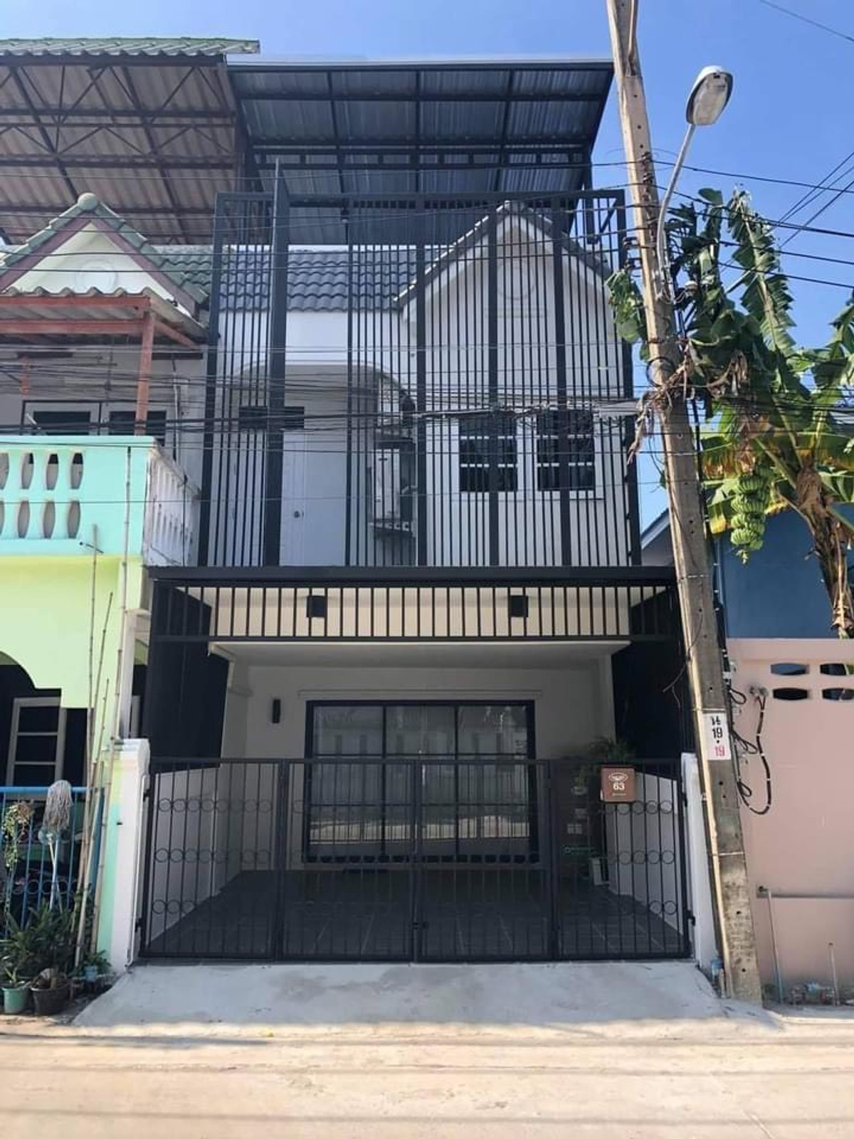 Main Road, area 18 square wah, 2 bedrooms, 2 bathrooms Location Si Kan Subdistrict, Don Mueang District, Bangkok 10210 Details - Area 21 square wah - 2 and a half floors (with rooftop) - 2 bedrooms, 2