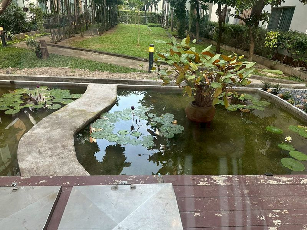 For rent, garden view room, clean condition, very cool room , room ready to move in. *** For rent V condo Chalong Krung near Lat Krabang University. near Suvarnabhumi Near Lat Krabang Industrial Estat