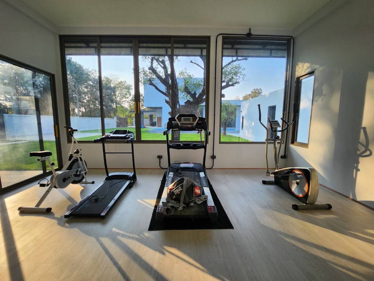 Modern pool villa for sale, 2 stories, on 1 rai of land, spacious usable area. Fully decorated with built-in furniture and electrical appliances. New San Kamphaeng location Convenient travel into the city SW003025