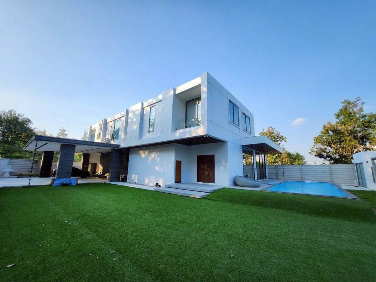 SW003025 Modern pool villa for sale, 2 stories, on land size 1 rai, spacious usable area. Fully decorated with built-in furniture and electrical appliances. New San Kamphaeng location Convenient trave