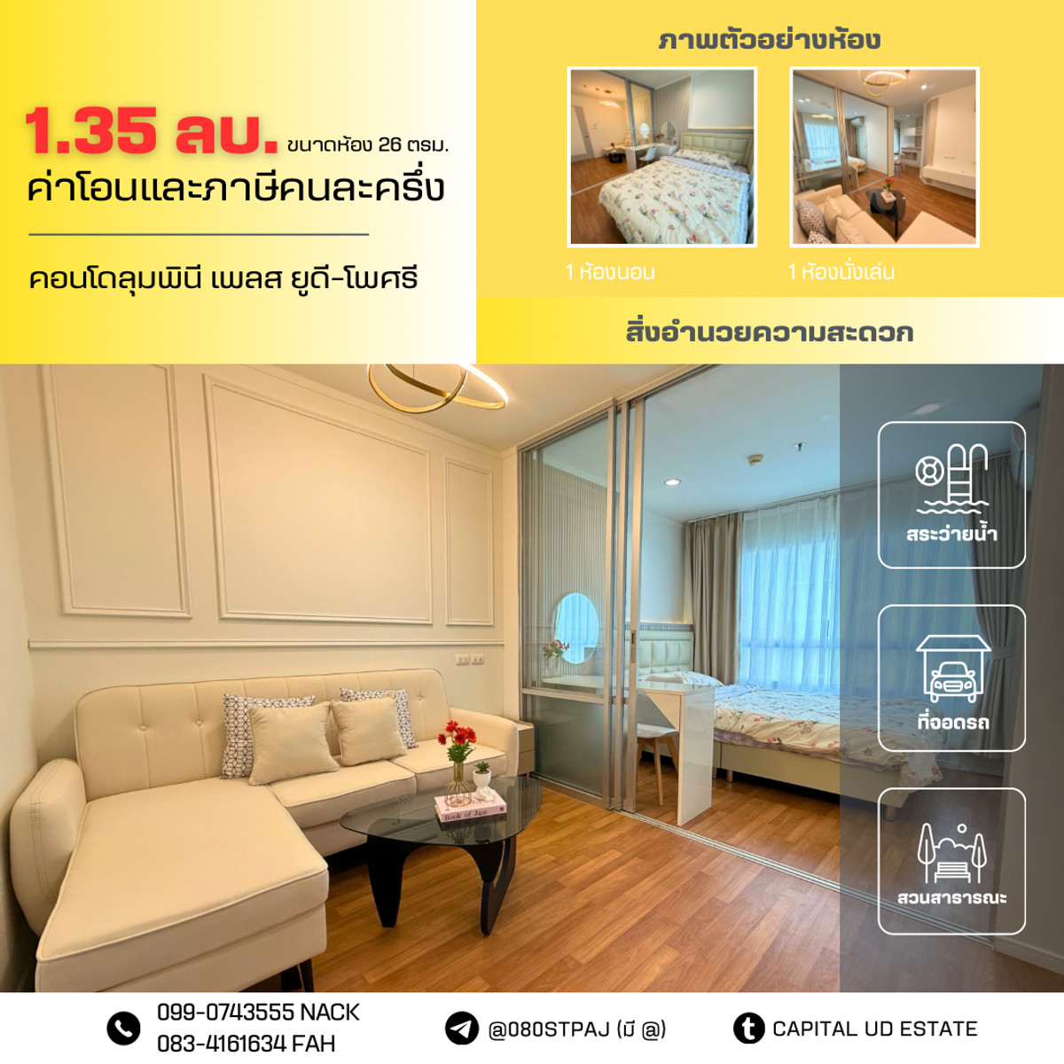 Condo for sale 📣 Condo for sale with full furniture. No need to buy additional Suitable for beginners buying a condo. Or buy it and rent it out. Average returns as high as 5-6% per year 📍Location: Lumpini place UD-Prosi 📣 Newly renovated room in white-cream tones Providing a luxurious, clean, livable atmosphere 🔖 Selling price only 1,350,000 baht (transfer fee and tax are shared in half according to the receipt) ✅Additional details - Building C, 12th floor, north - Usable area size approximately 26 sq m - 2 air conditioners - Bed + mattress - Sofa - Work desk - Water heater ➖➖➖➖➖➖➖➖➖➖➖➖➖ ⬇️Contact Inquire or make an appointment to view⬇️ ☎️ : Contact number Nack ☎️ : Contact number Fa 📳LINE@ : @080stpaj (with @ as well) 🌐or click the link: https://lin.ee/2fDQLhx ➖➖➖➖➖➖➖➖➖➖➖➖➖ #Capital Udon #capitaludon #Udoncondo #Udon real estate #Condo for sale #Second hand condo #Lumpini condo for sale