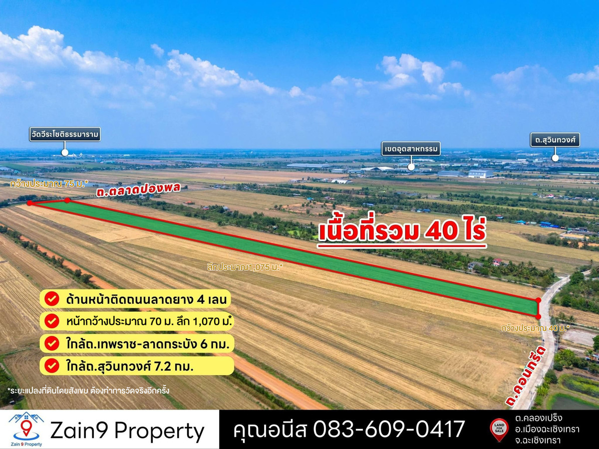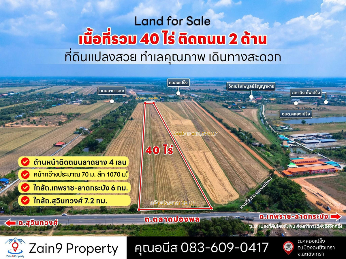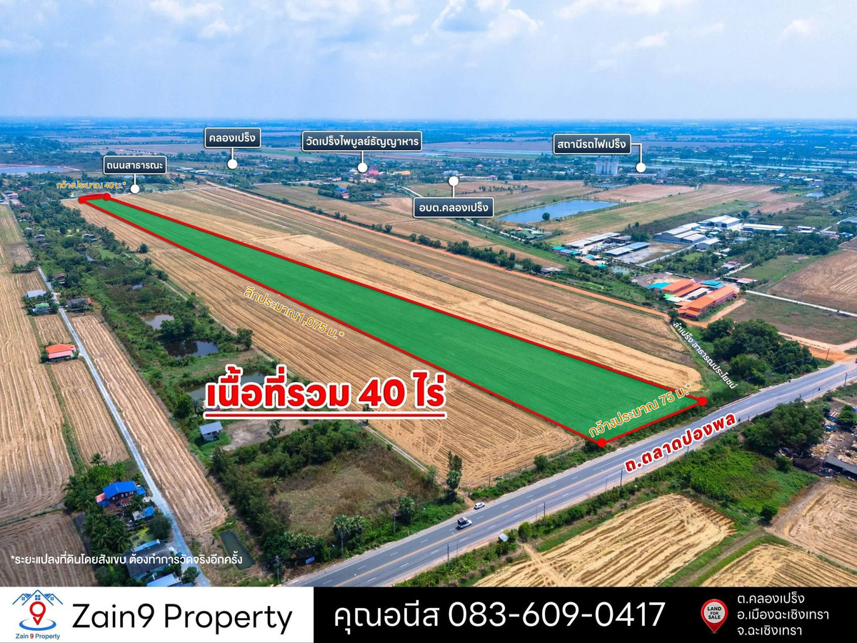 Land for sale in Khlong Preng , total area 40 rai 47 square wah, great location, next to the road on both sides, good location, convenient travel , very suitable. For investment in building a high-rise building, condominium, hotel or other commercial project Nearby places ✅ Khlong Preng ✅ Preng Railway Station ✅ Preng Subdistrict Administrative Organization ✅ Police station suitable for investors looking for a premium location in Chachoengsao land ready to transfer legally. If interested, please ask for more details or make an appointment to see the actual product.