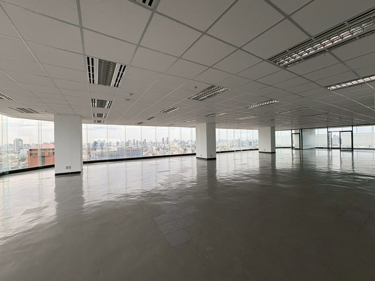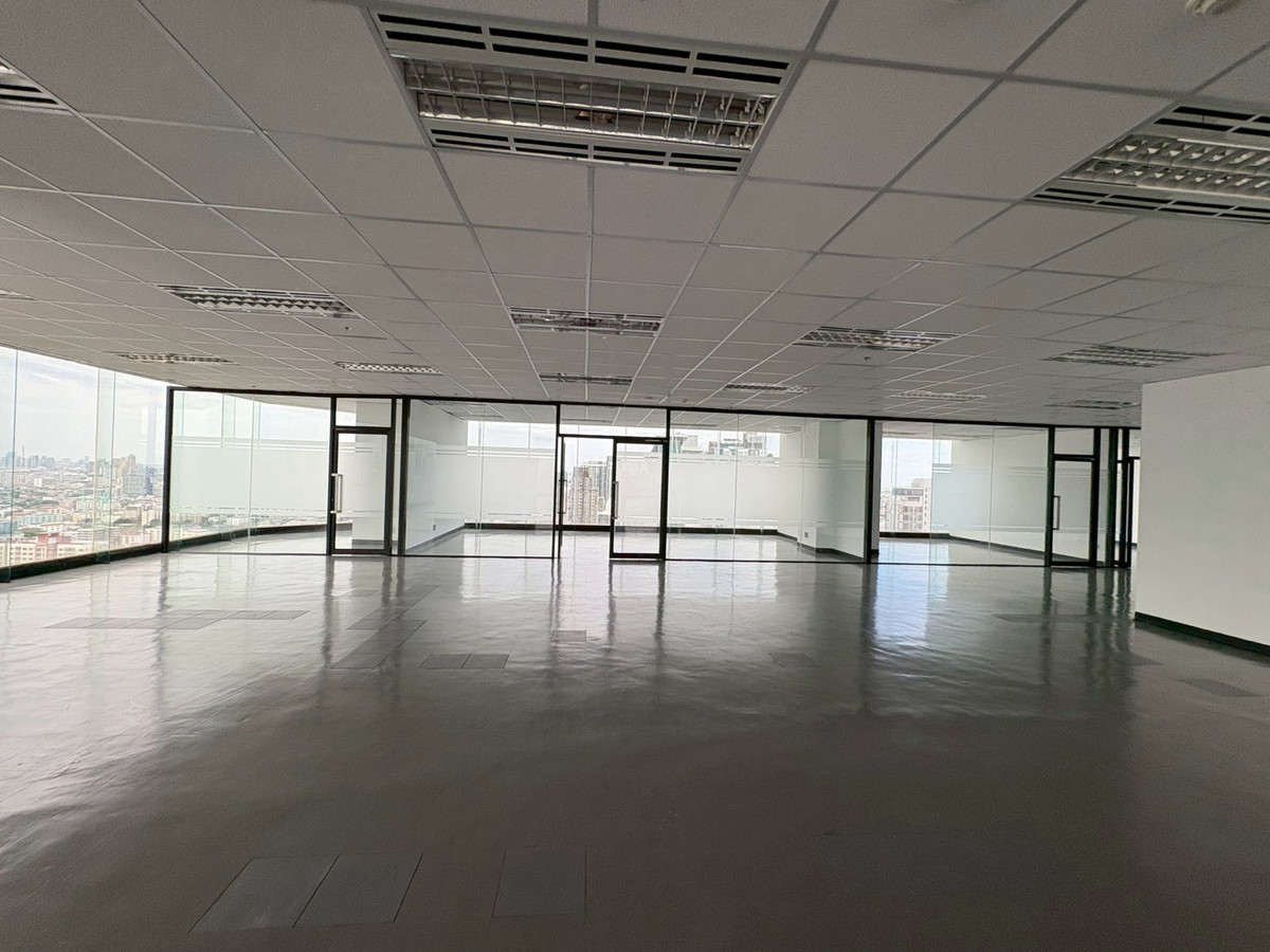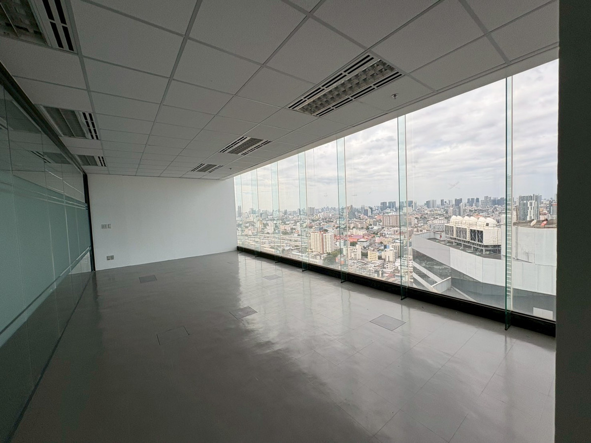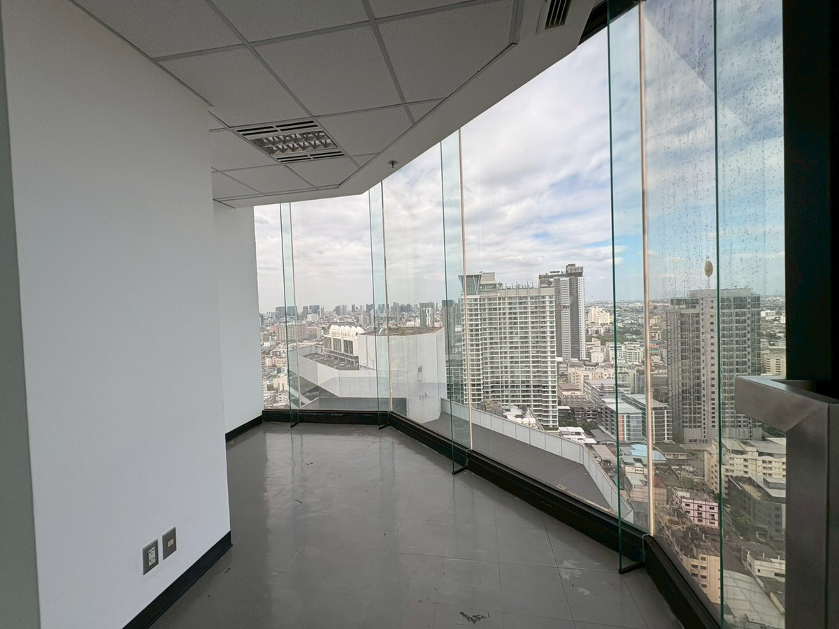 Large office space for rent on the Jubilee Prestige Tower, 25th floor 400m. from MRT Huai Khwang Highlights: Wide space, 360 degree city view through full height glass Property details: Area size: 1,100 sq m Floor: 25 Rental price: 800 baht/sq m Total price: 880,000 Baht/month Room condition: Full mirror (Floor-to-ceiling windows) There are some meeting rooms and executive rooms separated.