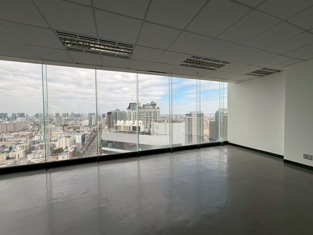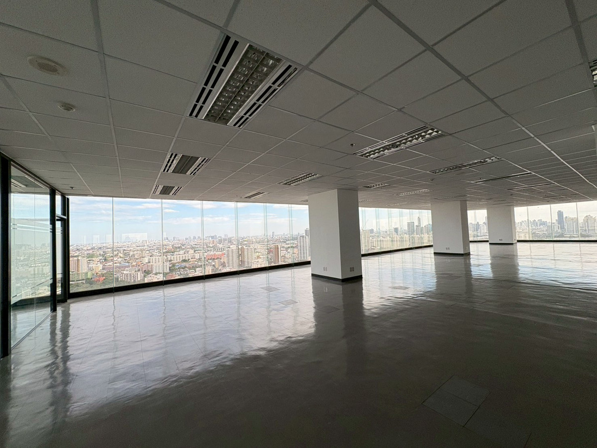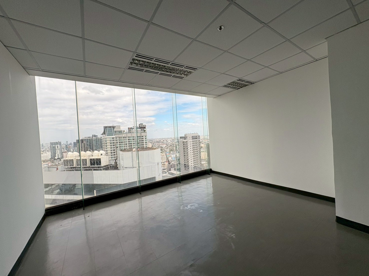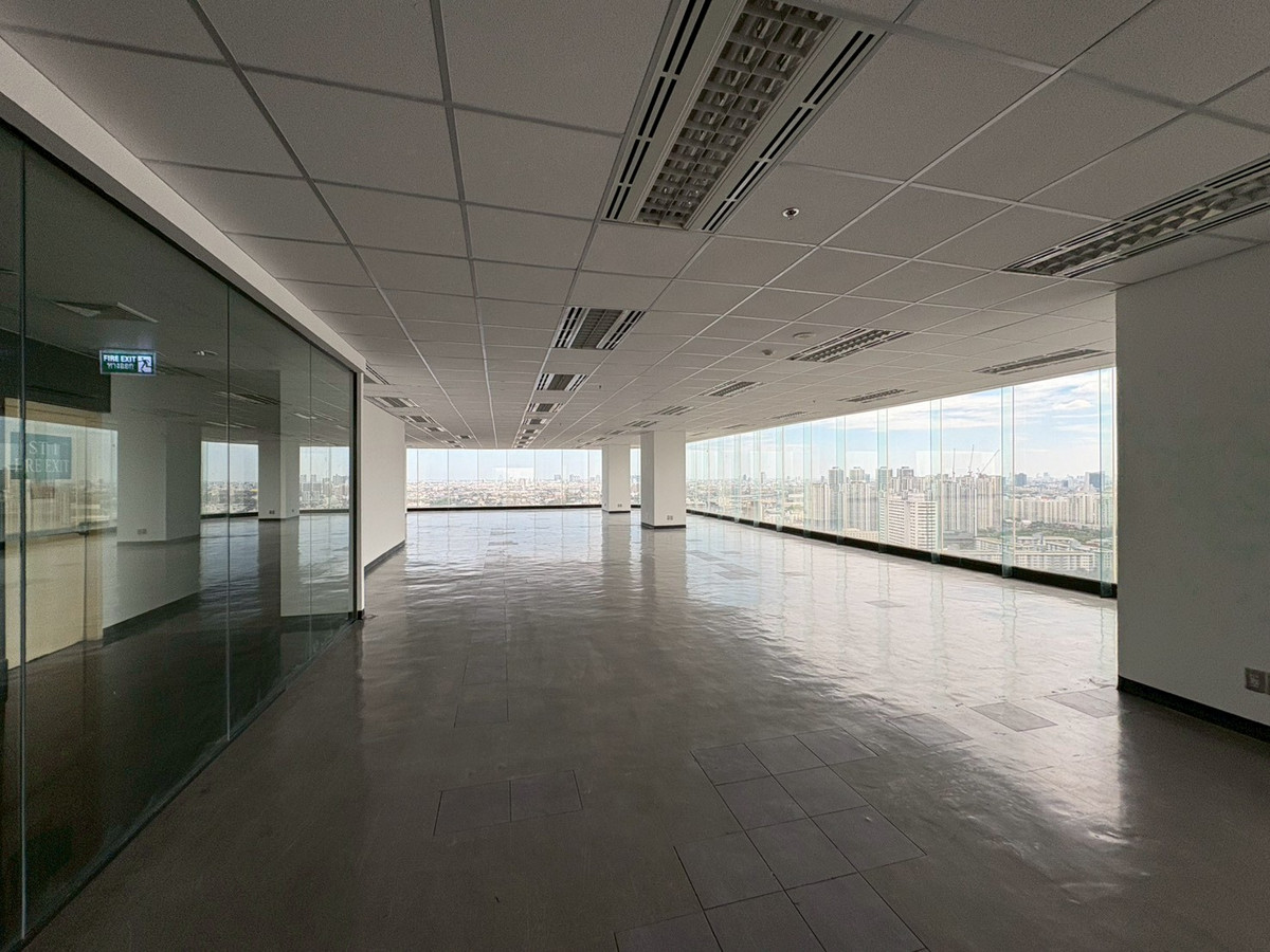 Large office space for rent on the Jubilee Prestige Tower, 25th floor 400m. from MRT Huai Khwang Highlights: Wide space, 360 degree city view through full height glass Property details: Area size: 1,100 sq m Floor: 25 Rental price: 800 baht/sq m Total price: 880,000 Baht/month Room condition: Full mirror (Floor-to-ceiling windows) There are some meeting rooms and executive rooms separated.