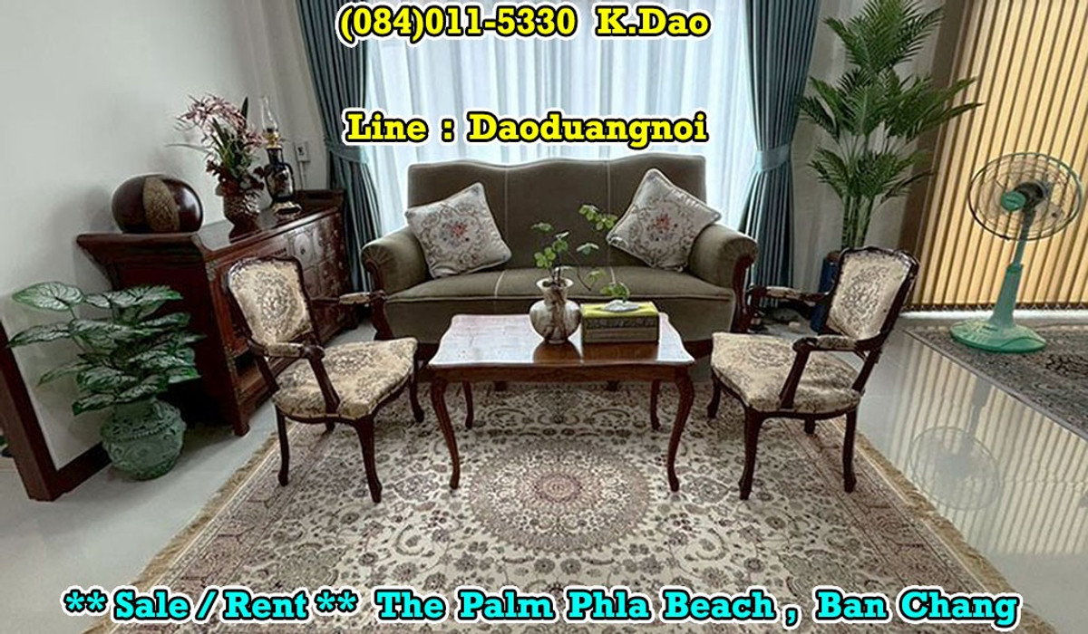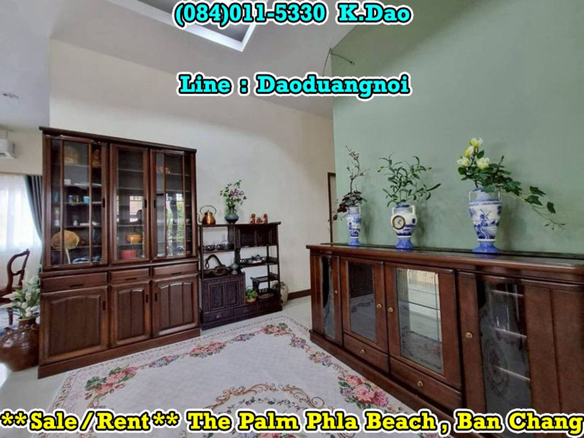 *** Sale / Rent *** New Renovation House The Palm Phla Beach, Ban Chang 1-Storey House Land Area 63.8 Sqr.wah 3 Bedrooms 2 Bathrooms 1 Living Room 1 Dining Area 1 Built-in Counter Bar 1 Office Area 1 Built-in Kitchen 1 Laundry Area 1 Terrace 4 Canopy Roofs 2 Parking Fully Furnished Beautiful Garden +++ Rental Fee 21,000 Baht +++ *** Sales Price 3,400,000 Baht *** Facilities - Clubhouse, which has a swimming pool and a gym. - 24-Hour-security guard and residents have the keycards to use for entering and exiting the village's gate. - Community Park - Jogging Lane Location : https://goo.gl/maps/3ruWbwD854ikDwYK6 Great Location. The village is on the street, which is connected to 2 roads, for directing to Motorway Entrance and Phla Beach. Near Garden International School (only 2 minutes' drive) Near Rayong English Program School Near U-Tapao International Airport Near Map Ta Phut Industrial Estate Near Wan Superstore (New Branch) Near Lotus Department Store Contact for buying or renting with Dao Tel : (084)011-5330 Line ID : Daoduangnoi WhatsApp : Contact number https://www.facebook.com/ThePastelProperty