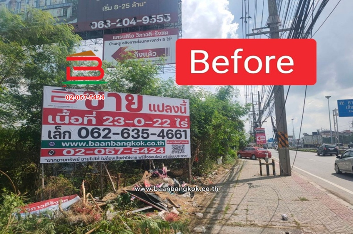 Property code 11364, 10522 : Empty land, beautiful plot, next to the Boulevard project ** Coordinates : 14.01293990,100.61988901 Property type : Empty land, next to the main road, Phahonyothin - inbound side, filled in as high as the road, Plot 1, width 32X512 meters, Plot 2, width 24X512 meters, both plots combined, width 56X512 meters, good location, convenient travel through many channels. (Its a purple area = industry and warehouse) Suitable for investment: office, storage, factory, village, condo, apartment, showroom Area: 23-0-52 rai Total price: 741,000,000 baht.*only* *** Can be divided into 2 plots for sale Area: 10-0-12 rai. Price : 321,000,000 baht. Area : 13-0-40 rai Price : 420,000,000 baht. Project name : Next to Bangkok Boulevard Project (Soi Khlong Luang 10) ** Ask for more information. ** Khun Lek Contact number Office Contact number , Contact number Location: Main Road, Phahonyothin, Secondary Road, Vibhavadi-Rangsit Khlong Nueng Subdistrict Khlong Luang District Pathum Thani Province Highlights/Nearby Places : - Thai Market - Bangkok University (Rangsit District) - Thammasat University - Department of Lands, Khlong Luang-Pathum - Phatthana-Thonburi Hospital - Royal Thai Mint, Khlong Luang - Department of Lands, Khlong Luang-Pathum Thani - Thammasat Chaloem Phrakiat Hospital - Karunwet Hospital Pathum Thani - Navanakorn Medical Hospital - Pinehurst Golf and Country Club - Don Mueang Airport Convenient travel in and out through many channels: - Phahon Yothin Road - Vibhavadi-Rangsit Road - Red Line (Rangsit Station - Don Mueang Station) - Tollway Expressway - Khlong Luang Road - Rangsit-Nakhon Nayok Road
