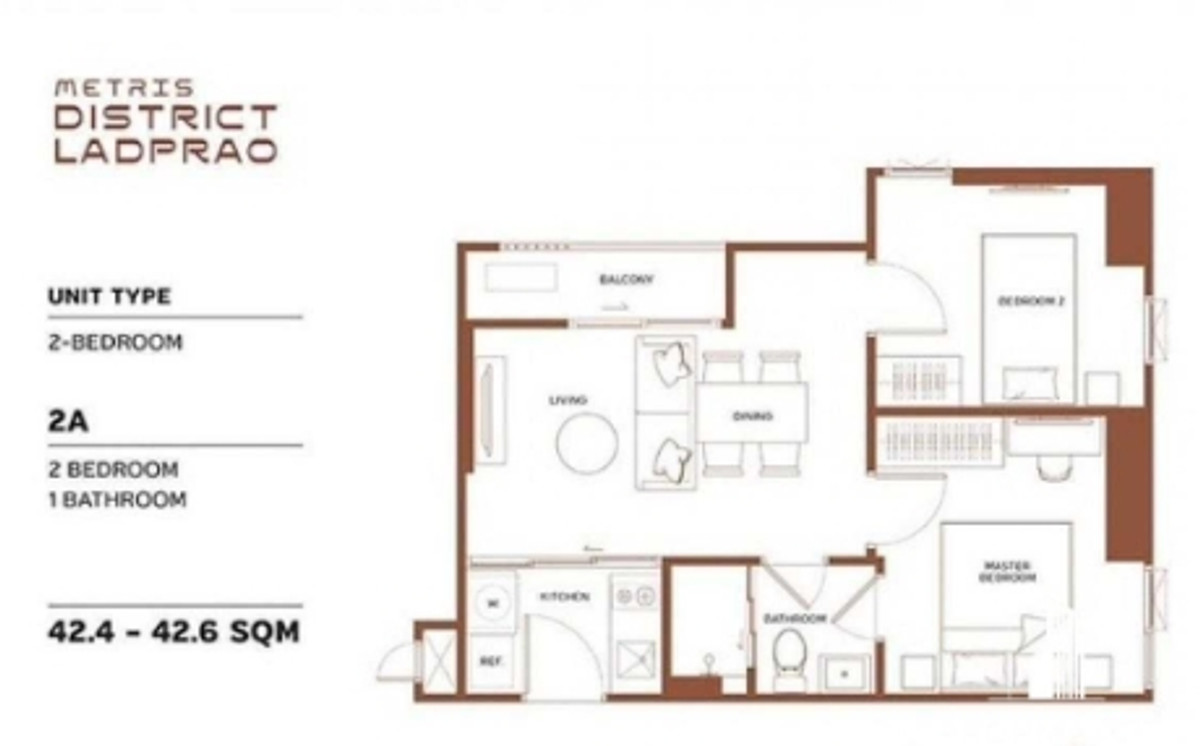 ✨Flash Deal ✨ Metris District Ladprao (2Bed 1Bath 42.6SQM.) ready to move in! Only 5,200,000 baht Tel.0981315848 @propmatch