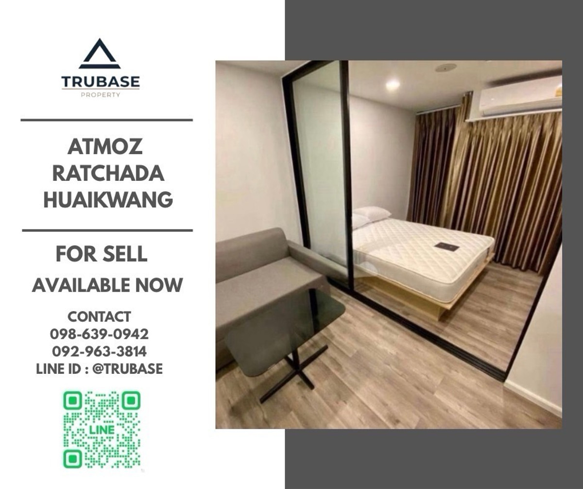 Property code: TBELM3 Atmoz Ratchada-Huai Khwang project Resort style condo in the heart of Ratchada 🌿✨ Type: 1 bedroom | 1 bathroom Size: 22.05 sq m Floor: 4 Building: B 🔥Special price only: 2,310,000 baht🔥 Ask for more information | Make an appointment to view the room ❇️Contact us ❇️ 📱 Contact number / Contact number 💬 Line Official ID : @trubase 🔗 Line Official Link : https://line.me/R/home/profile?id=@trubase