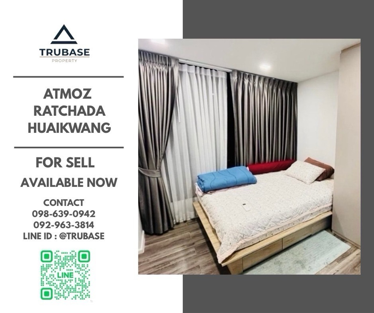 Property code: TBELM4 Atmoz Ratchada-Huai Khwang project Resort style condo in the heart of Ratchada 🌿✨ Type: 2 bedrooms | 1 bathroom Size: 34 sq m Floor: 5 Building: B 🔥Special price only: 3,390,000 baht🔥 Ask for more information | Make an appointment to view the room ❇️Contact us ❇️ 📱 Contact number / Contact number 💬 Line Official ID : @trubase 🔗 Line Official Link : https://line.me/R/home/profile?id=@trubase