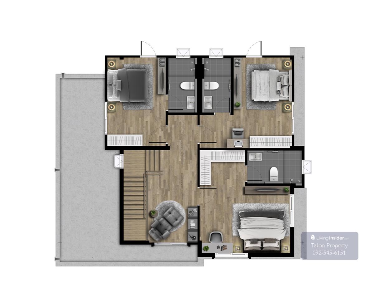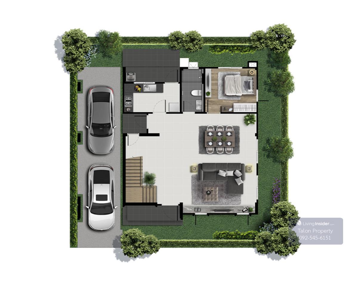 Centro Bangna project (Km. 7) near Mega Bangna Usable area 230 sq m. Land 52.60 sq m. Lots of garden space around the house • 3 bedrooms • 4 bathrooms • 2 living rooms • 1 small bedroom (maids room, o