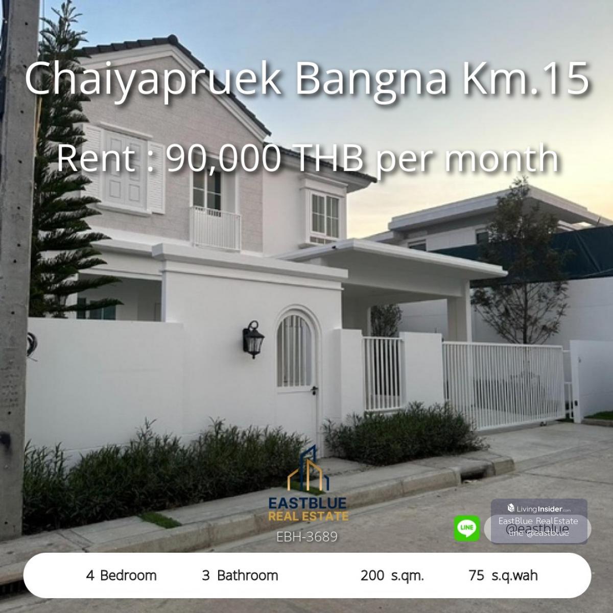 Project : Chaiyapruek Bangna Km.15 ID : EBH-3689 4 Bed 3 Baht House Area :200 sqm Land Area :75 sq.wah Rental Price : 90,000 THB per month Selling Price : THB . ิติดต่อ Contact, Appointment for viewing. call: Contact number WhatsApp: Contact number - Eastblue เราคือทีมตัวแทนอสังหาริมทรัพย์มืออาชีพ ที่ได้รับความไว้วางใจด้วยยอดขายรวมมูลค่าหลายพันล้านบาท พร้อมทีมที่ปรึกษาผู้เชี่ยวชาญด้านการซื้อ ขาย และการลงทุนในอสังหาริมทรัพย์ . ดูทรัพย์อื่นๆมากกว่า 50,000 รายการ ,explore over 50,000 listings on our website: https://www.eastblueth.com ❗️❗️not accept co-agent❗️❗️ . บ้านให้เช่า – Chaiyapruek Bangna Km.15 • 4 ห้องนอน 3 ห้องน้ำ ที่จอดรถ 2 คัน • พื้นที่ใช้สอย 200 ตร.ม. ที่ดิน 75 ตร.ว. • บ้านหันทิศเหนือ ตกแต่งหญ้าเทียมทั้งหลัง • มีสวนและสนามบาสเก็ตบอลในสวนหลังบ้าน จุดเด่นโครงการ • ติด American School of Bangkok (ASB) • ตรงข้ามสนามกอล์ฟ Thana City • เดินทางสะดวก ใกล้ Mega บางนา เพียง 5 กม. สิ่งอำนวยความสะดวก • แอร์ 4 เครื่อง เครื่องทำน้ำอุ่น 2 เครื่อง • เครื่องซักผ้า เตาไฟฟ้า ตู้เย็น • มุ้งลวดประตู–หน้าต่างครบ • ฟรีค่าส่วนกลาง สถานที่ใกล้เคียง • American School of Bangkok (ติดโครงการ) • สนามกอล์ฟ Thana City (ตรงข้าม) • Mega บางนา 5 กม. • Bangkok Patana School 6 กม. • Robinson ศรีนครินทร์ 8 กม. • รพ. ไทยนครินทร์ 7 กม. • รพ. สมิติเวช ศรีนครินทร์ 9 กม. ราคาเช่า • 90,000 บาท/เดือน • สัญญาเช่า ขั้นต่ำ 1 ปี • จ่ายล่วงหน้า 1 เดือน + ประกัน 2 เดือน บ้านพร้อมเข้าอยู่ เดินทางสะดวก สถานที่สำคัญครบวงจร #ChaiyapruekBangna #บ้านเช่าบางนา #บ้านเดี่ยวให้เช่า