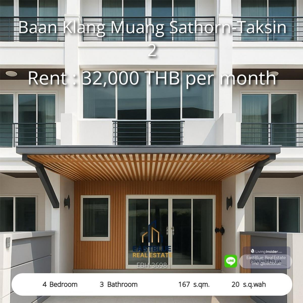 Project : Baan Klang Muang Sathorn-Taksin 2 ID : EBH-3698 4 Bed 3 Baht House Area :167 sqm Land Area :20 sq.wah Rental Price : 32,000 THB per month Selling Price : THB . ิติดต่อ Contact, Appointment for viewing. call: Contact number WhatsApp: Contact number - Eastblue เราคือทีมตัวแทนอสังหาริมทรัพย์มืออาชีพ ที่ได้รับความไว้วางใจด้วยยอดขายรวมมูลค่าหลายพันล้านบาท พร้อมทีมที่ปรึกษาผู้เชี่ยวชาญด้านการซื้อ ขาย และการลงทุนในอสังหาริมทรัพย์ . ดูทรัพย์อื่นๆมากกว่า 50,000 รายการ ,explore over 50,000 listings on our website: https://www.eastblueth.com ❗️❗️not accept co-agent❗️❗️ . บ้านกลางเมืองสาทร-ตากสิน 2 ID: EBH-3698 • ทาวน์โฮม 3 ชั้น 4 ห้องนอน 3 ห้องน้ำ 2 ที่จอดรถ • พื้นที่ใช้สอย 167 ตร.ม. ขนาดที่ดิน 20 ตร.ว. • ตกแต่งพร้อมอยู่ บิ้วอินทั้งหลัง • ใกล้ BTS วุฒากาศ เพียง 1.3 กม. • ไม่รับสัตว์เลี้ยง และไม่อนุญาตทำโฮมออฟฟิศ • เหมาะสำหรับอยู่อาศัย รับชาวต่างชาติ สิ่งอำนวยความสะดวก • ระบบรักษาความปลอดภัย 24 ชั่วโมง • สวนสาธารณะ และพื้นที่พักผ่อน สถานที่ใกล้เคียง • Big C ดาวคะนอง 3.5 กม. • รพ. สมิติเวช ศรีนครินทร์ 9.2 กม. • ร.ร. นานาชาติ Shrewsbury 8.5 กม. • ICONSIAM 4.2 กม. ราคาเช่า 32,000 บาท/เดือน #บ้านกลางเมืองสาทรตากสิน2 #ทาวน์โฮมเช่า #BaanKlangMuangSathornTaksin2 #บ้านเช่าสาทร