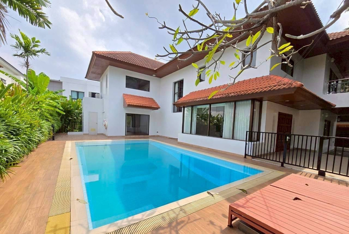 ✅ Urgent sale!! Single house, Nichada Thani Village ■ 4 bedrooms l 4 bathrooms ■ Land size 176 sq m ■ Usable area 540 sq m ■ Swimming pool ■ Maids room 👉 Selling price 40 million baht 👉 Transfer fee is half ▲ Walking distance to ISB International School Tel : Contact number (Khun Ning) Line ID : Maaragent Link Line : https://line.me/ti/p/VICtGA2Wrd WhatsApp: Contact number -------------------------------