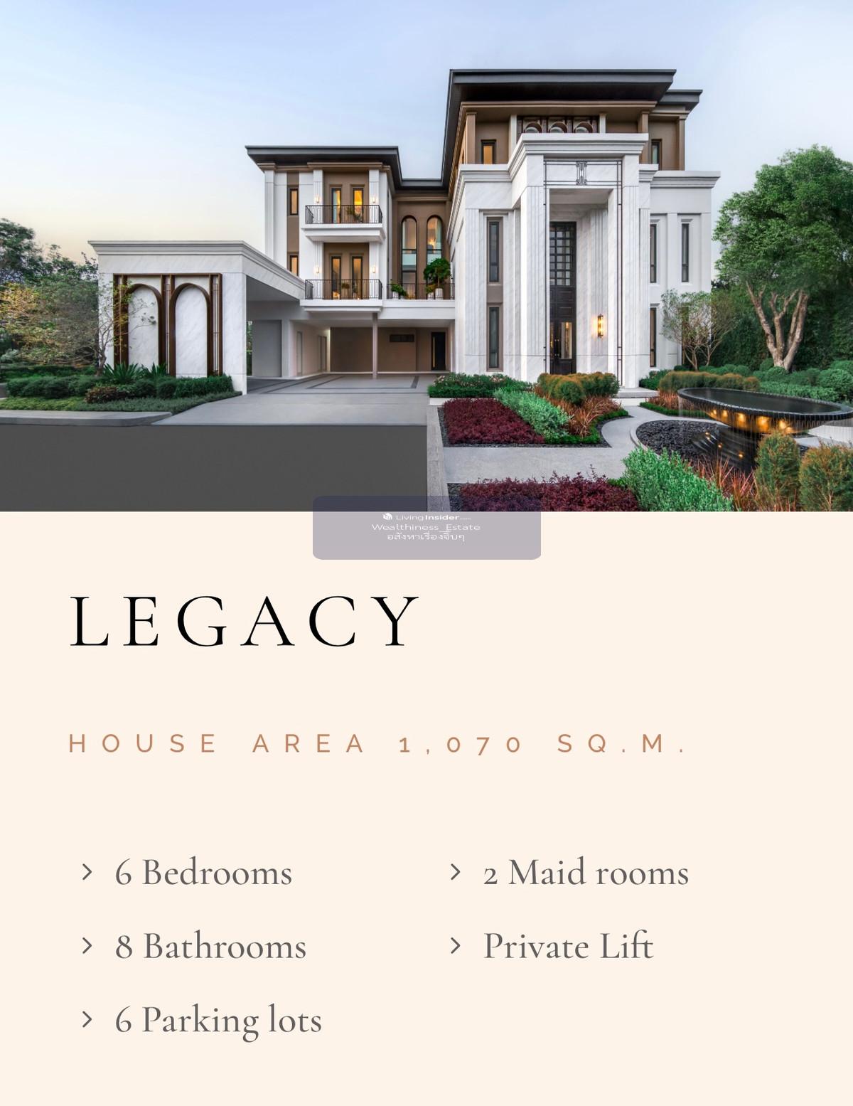 Cing Royal The Eighteen Bangna KM.7 Project Starting price 65 - 130 million Next to the luxury department store Mega Bangna Next to the international school. Concordian next to Muang Kaew golf course project area 14-1-79.0 rai 18 units common fee 78 baht/square wa houses in the project facing parallel north and south common area, Park, Pavilion, Playground & Tree House, Basketball Court house type LEGACY (XXL) luxury 3-storey detached house usable area 1,070 sq m. Land starting at 207-276 sq m. • 6 bedrooms • 8 bathrooms • 6 car parking spaces • 2 maids rooms • Private elevator Ask for details. Make an appointment to visit the project https://line.me/ti/p/OYHmcBxXuf 📞 Tel : Contact number (Tim) 📱 Line : zonetezm ✉️ Email : Contact email 💻 Website : www.wealthinessestate.com