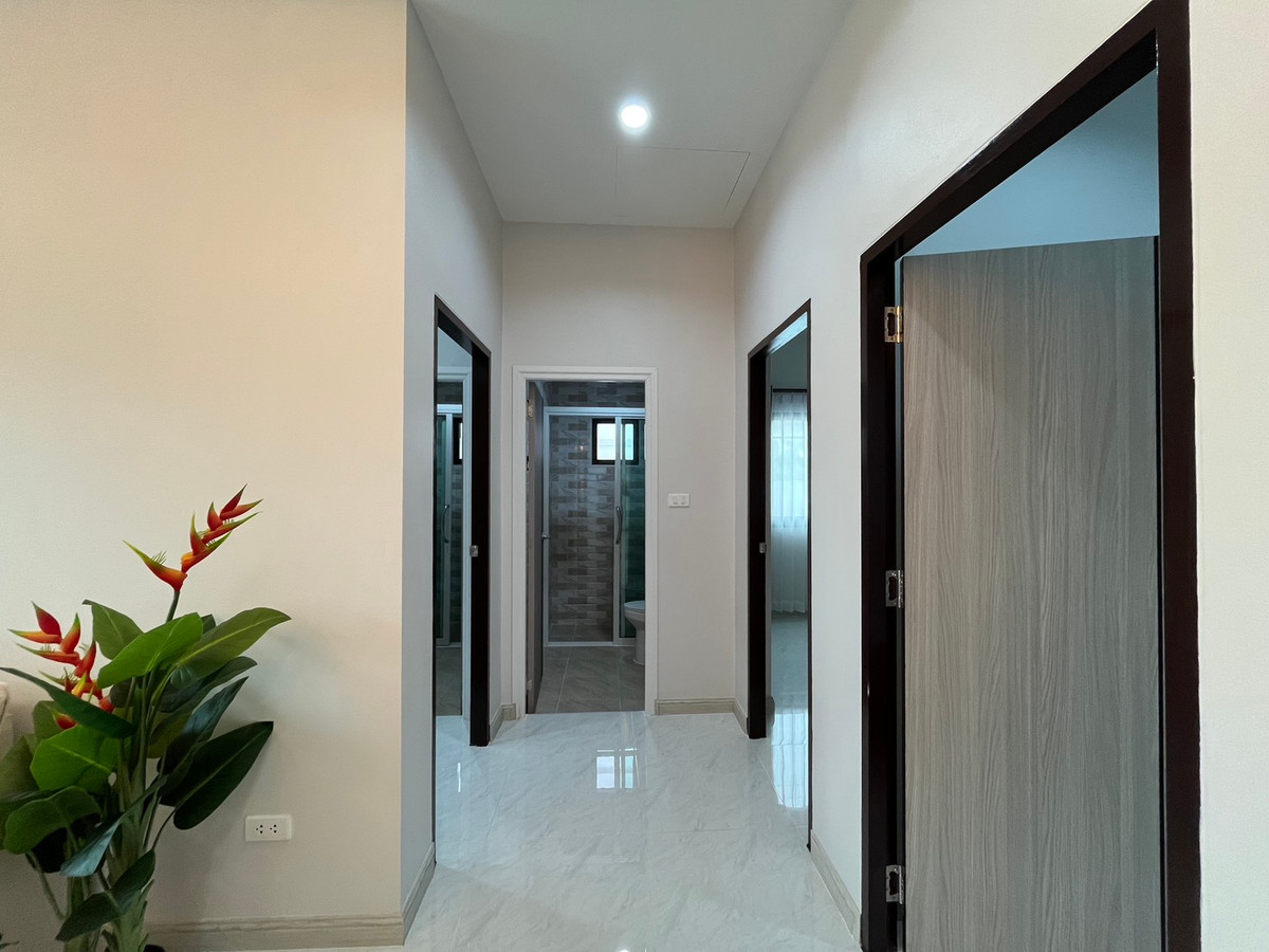 🏡 Single house Pattaya – Pong Khao Mai Kaew 3 bedrooms | 2 bathrooms | Completely beautiful house, complete in one price. Ready to move in, no need to buy anything additional! ✨ Complete with free gifts throughout the house. Free transfer / Free air conditioner / Free processing fee Complete furniture throughout Free water tank + water pump Free garage roof + tiles around the house Free kitchen counter + curtains for the whole house Free sofa, table, lounge cabinet Completely this size for a price of only 3.99 million baht. 📌 Quality location Good wind, airy, easy to travel. Near the motorway – Line 36 – Line 331 Close to Pattaya city, the sea and Terminal 21, just 19 minutes. 📞 Interested in making an appointment to see the house? Call Contact number (Inz)