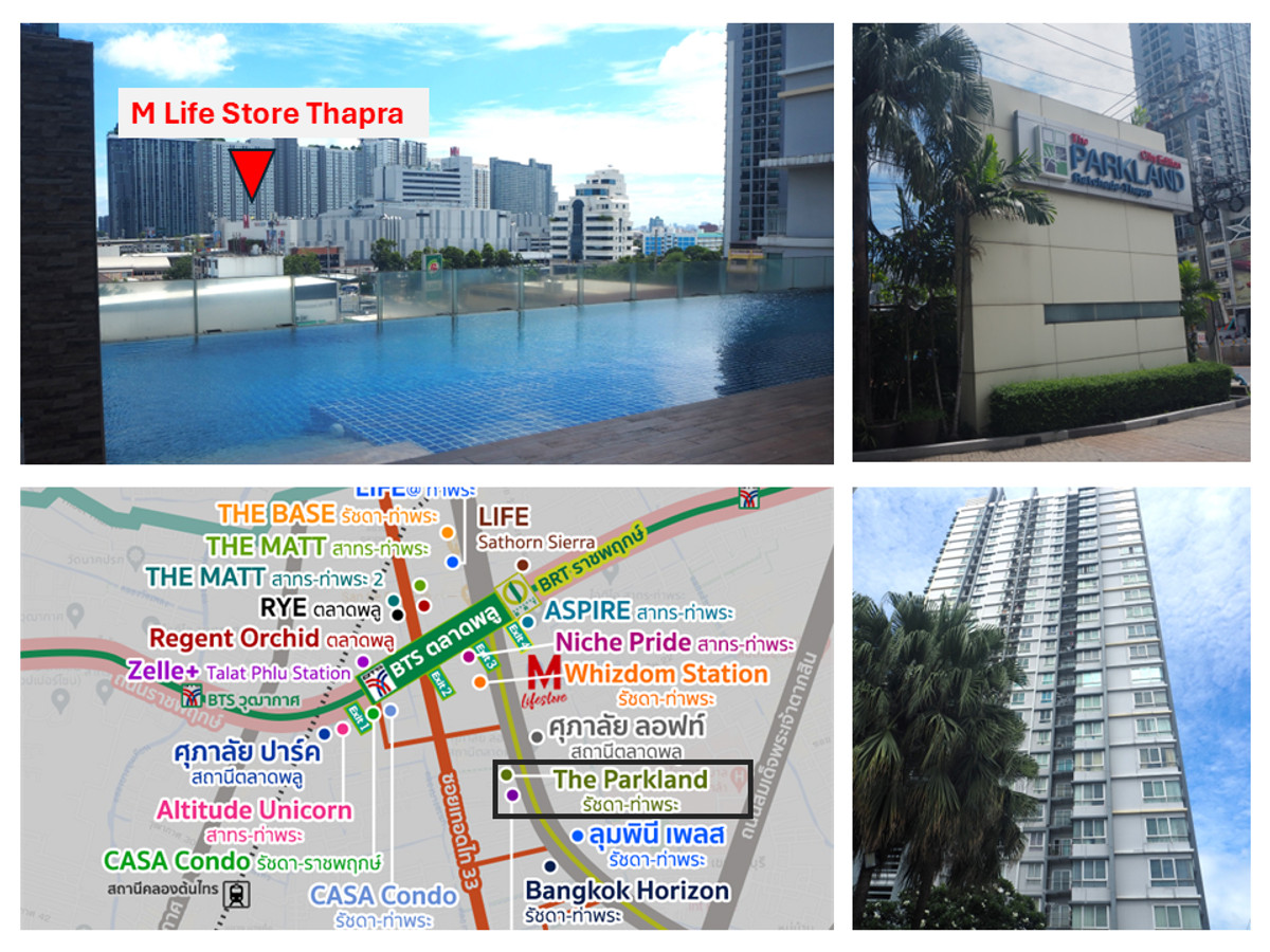 🏢 The Parkland (Ratchada-Thapra) :The Parkland (Ratchada-Thapra) 🔸 Type : 2 bedrooms, 1 bathroom 🔸 Size: 51.57 sq m., 16th floor 🔸 Fixed parking space specified in the title deed: 12 sq m. 🔸 Corner ro