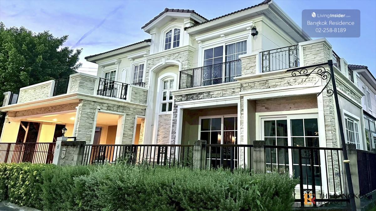 A beautifully designed fully furnished show home in Grandio Ladprao–Kaset Nawamin, located in Soi Nawamin 42. This rare corner plot next to the project’s garden offers open views, exceptional privacy, and premium built-in décor throughout. Move-in ready with full furniture and appliances. Property Details • Land size: 60 sq.w. • Usable area: 264 sqm • 3 Bedrooms • 4 Bathrooms • 2 Living rooms • 2 Multi-purpose rooms (ideal for office, playroom, or extra lounge) • Thai kitchen + Western kitchen • Laundry room + storage room • Maid’s room with bathroom • Parking for 3 cars Highlights • Former Show Home — premium built-ins & stylish interior • Fully furnished with full appliances • Corner unit next to the garden — open view & great privacy • Prime location in Ladprao–Kaset Nawamin area • Move-in ready, no additional renovation required A perfect home for families seeking a fully furnished luxury residence in a peaceful yet highly connected urban location. Call Now : Contact number Line : @condorentbkk FB : The Bangkok Residence X : @BR_bkkresidence Website : The Bangkok Residence IG : TheBangkokResidence TikTok : the.bangkok.residence