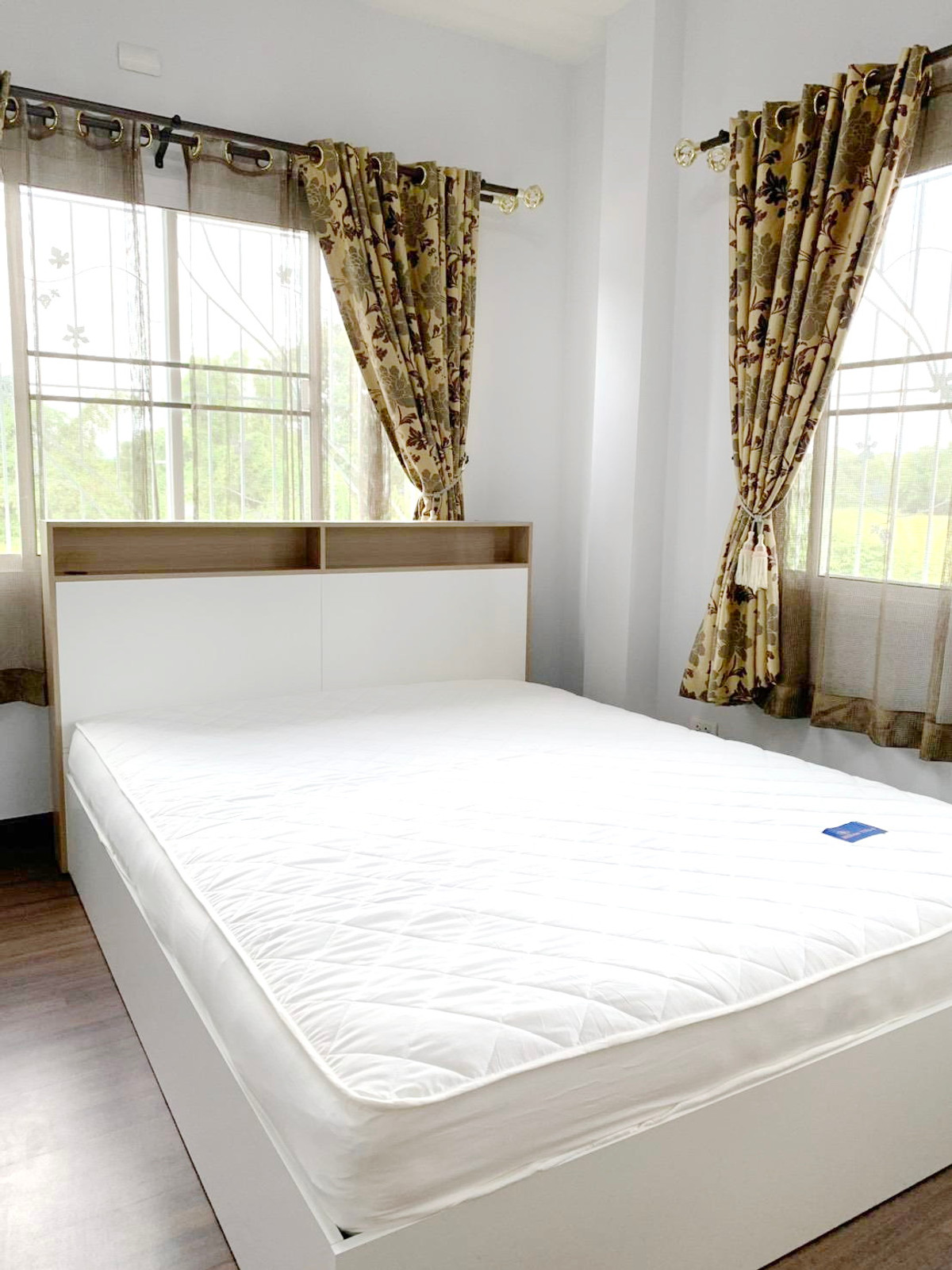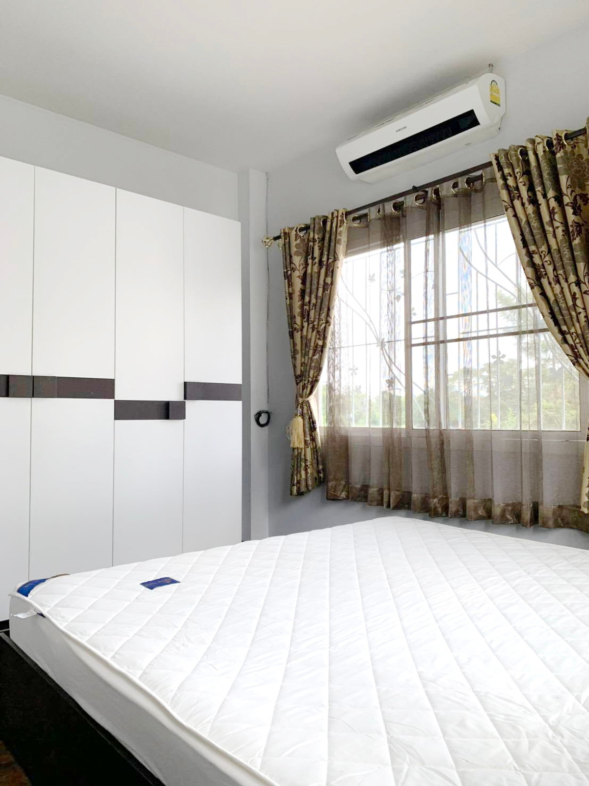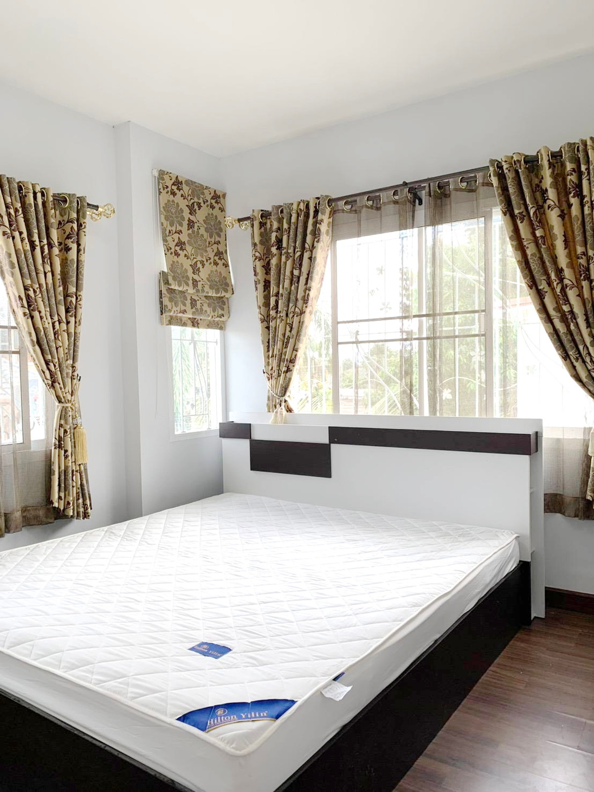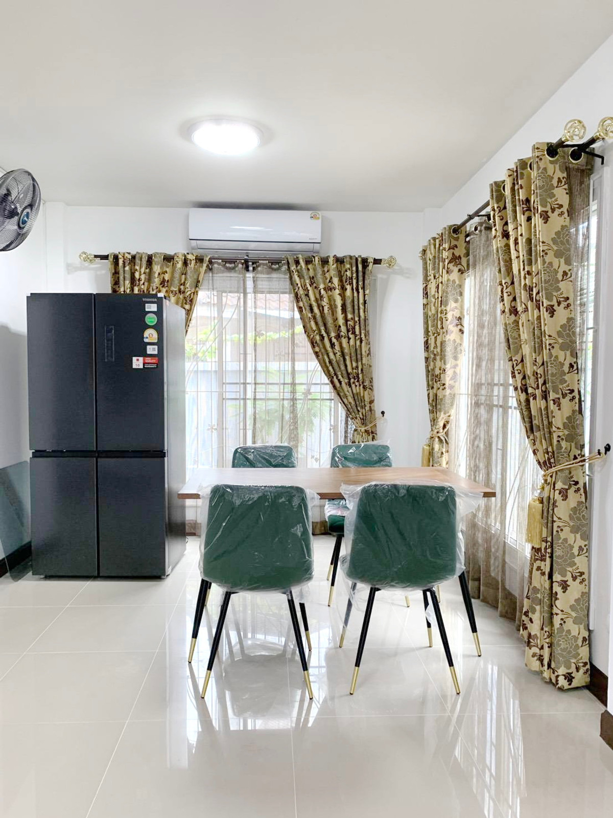 Rental price: 25,000 THB/month 1-year contract (2-month deposit + 1-month advance) • Land size: 85.5 sq.w. | Usable area: 120 sq.m • 3 bedrooms, 3 bathrooms • Fully furnished with new furniture & appliances • Free common area fee • Free home internet • Free lawn care every 2 months Project Facilities • 24-hour security & CCTV • Swimming pool • Fitness • Garden and relaxation area Nearby Places • Tha Rua Market – 2 min • Ui Ta Market – 9 min • Charoen Charoen Market – 12 min • Mill Hill International School – 6 min • Central Festival – 15 min